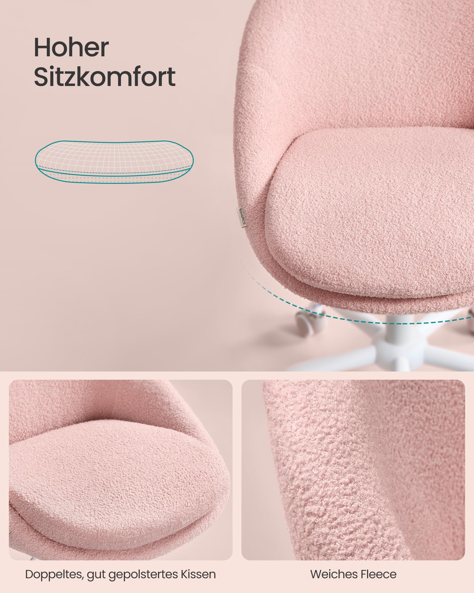 SONGMICS Homeoffice-Stuhl Fleece – Pastellrosa OBG020R03