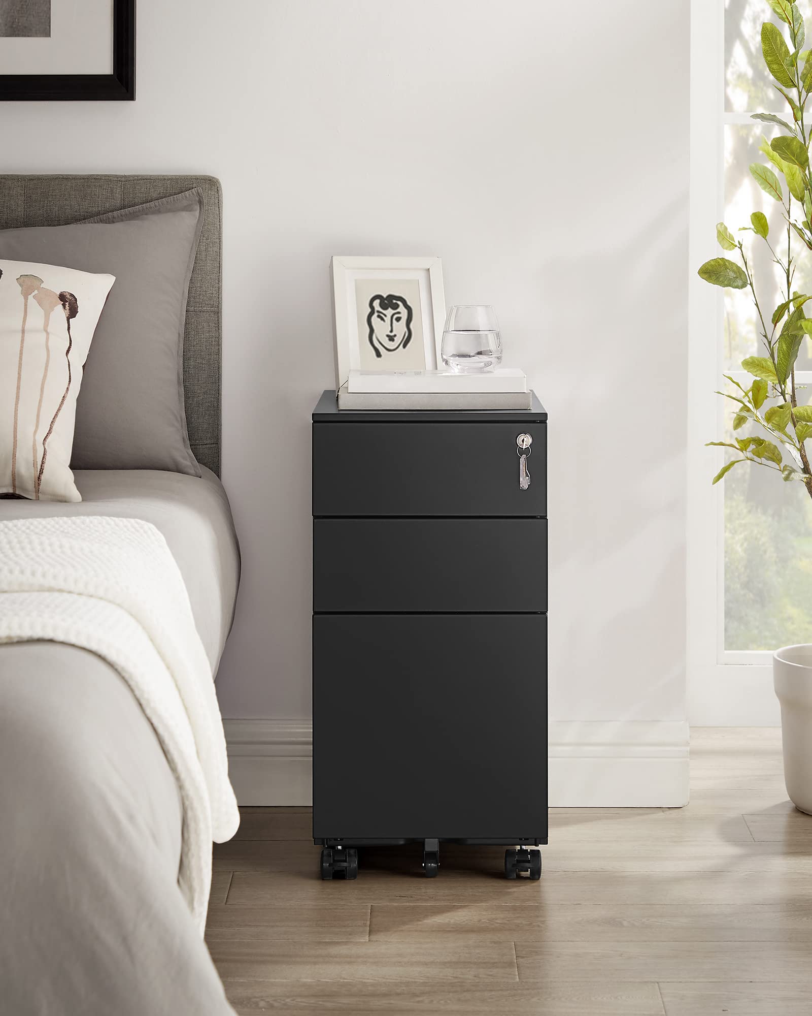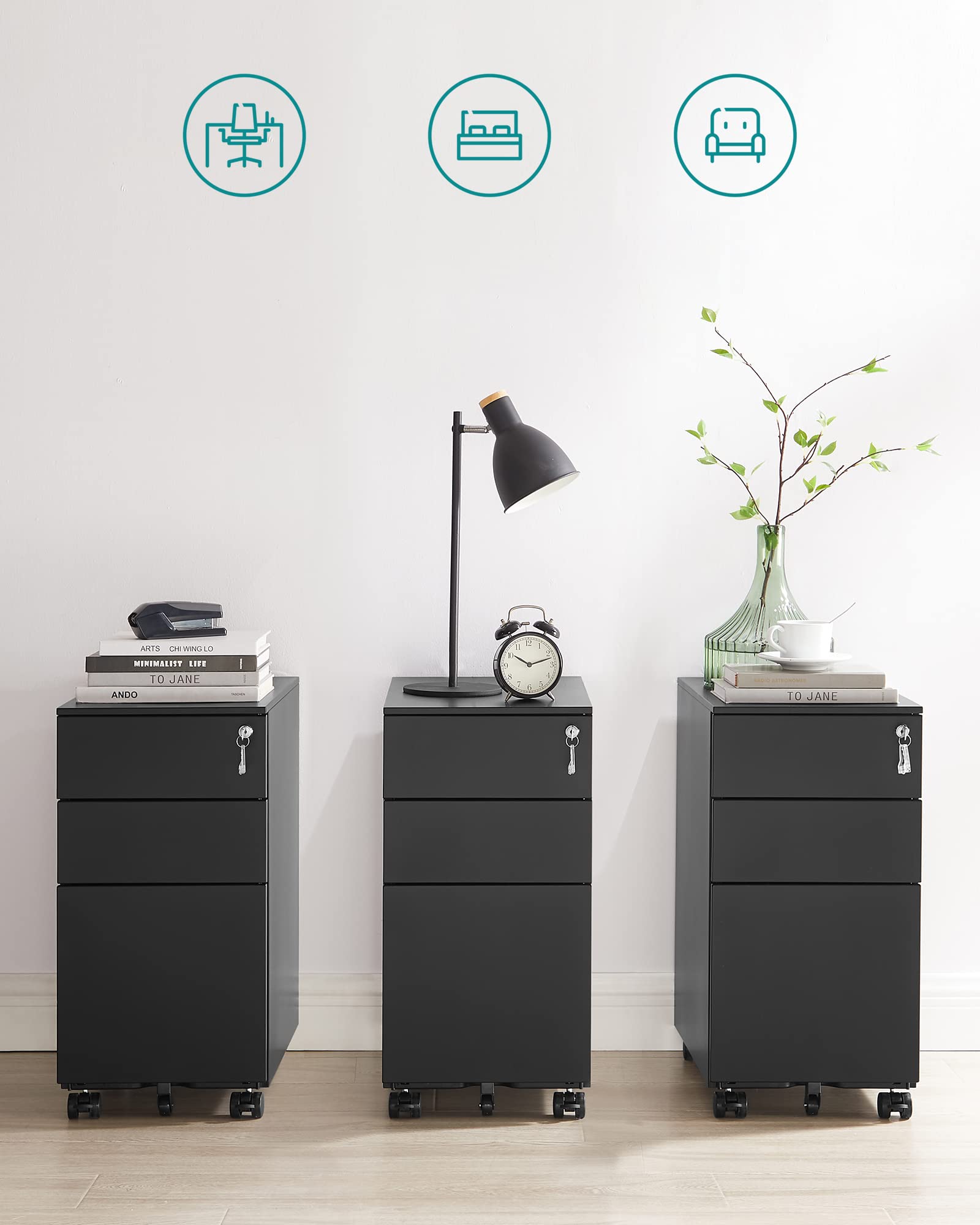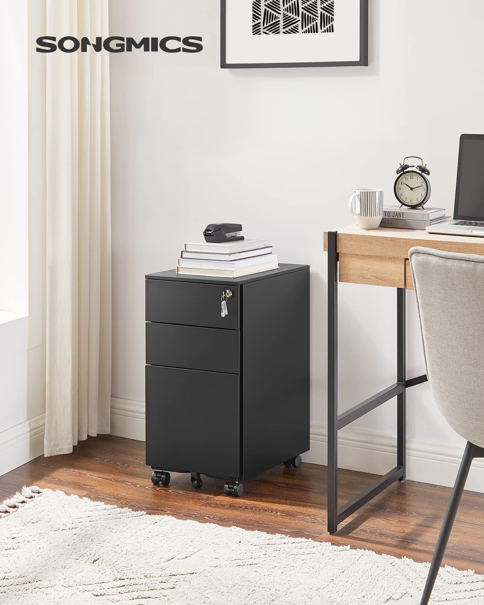 SONGMICS Rollcontainer 3 Schubladen abschliessbar – Schwarz OFC031B01