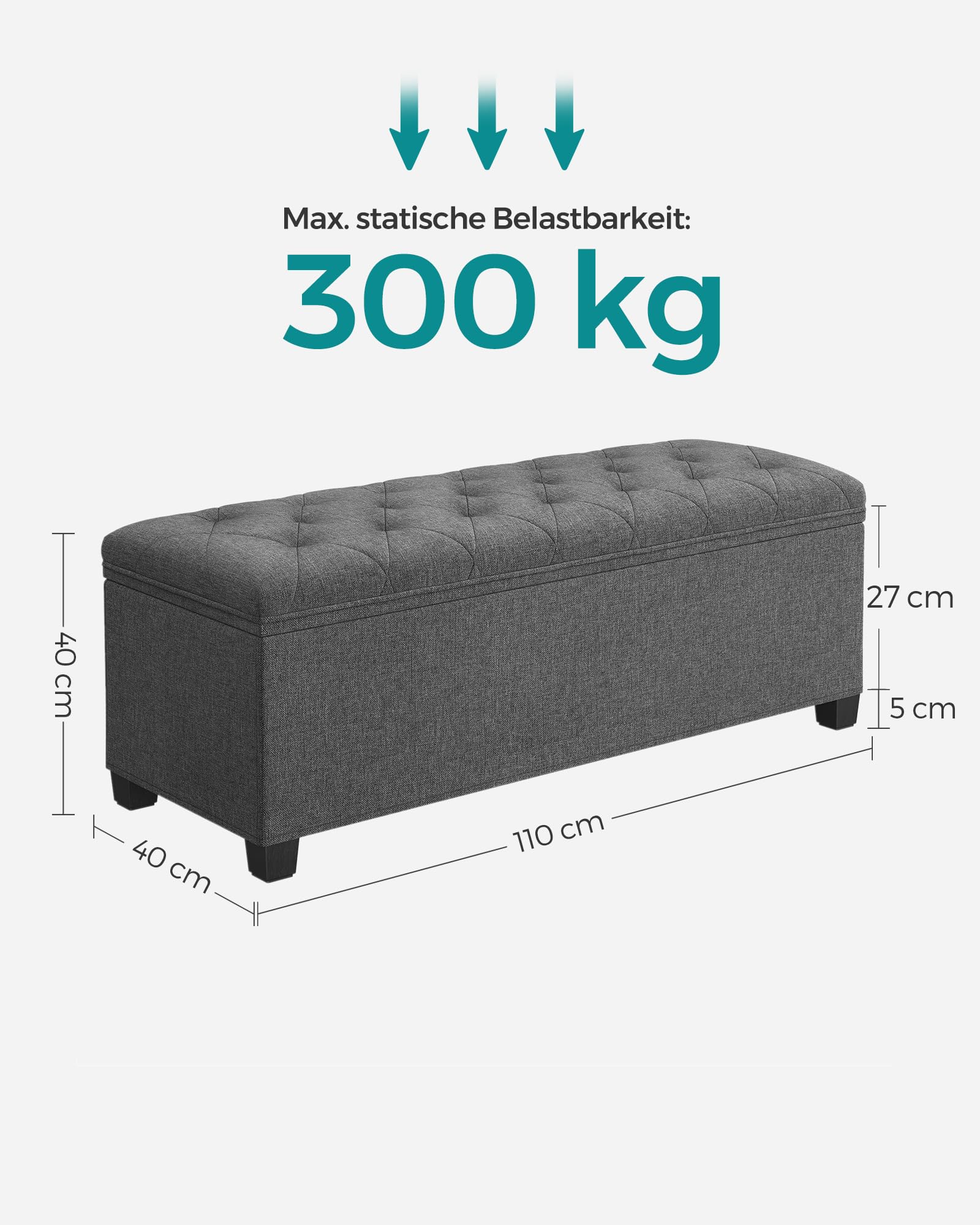 - Grosszügiger Stauraum: Mit den Massen 40 x 110 x 40 cm bietet die Bank ein Innenvolumen von 103 Litern.