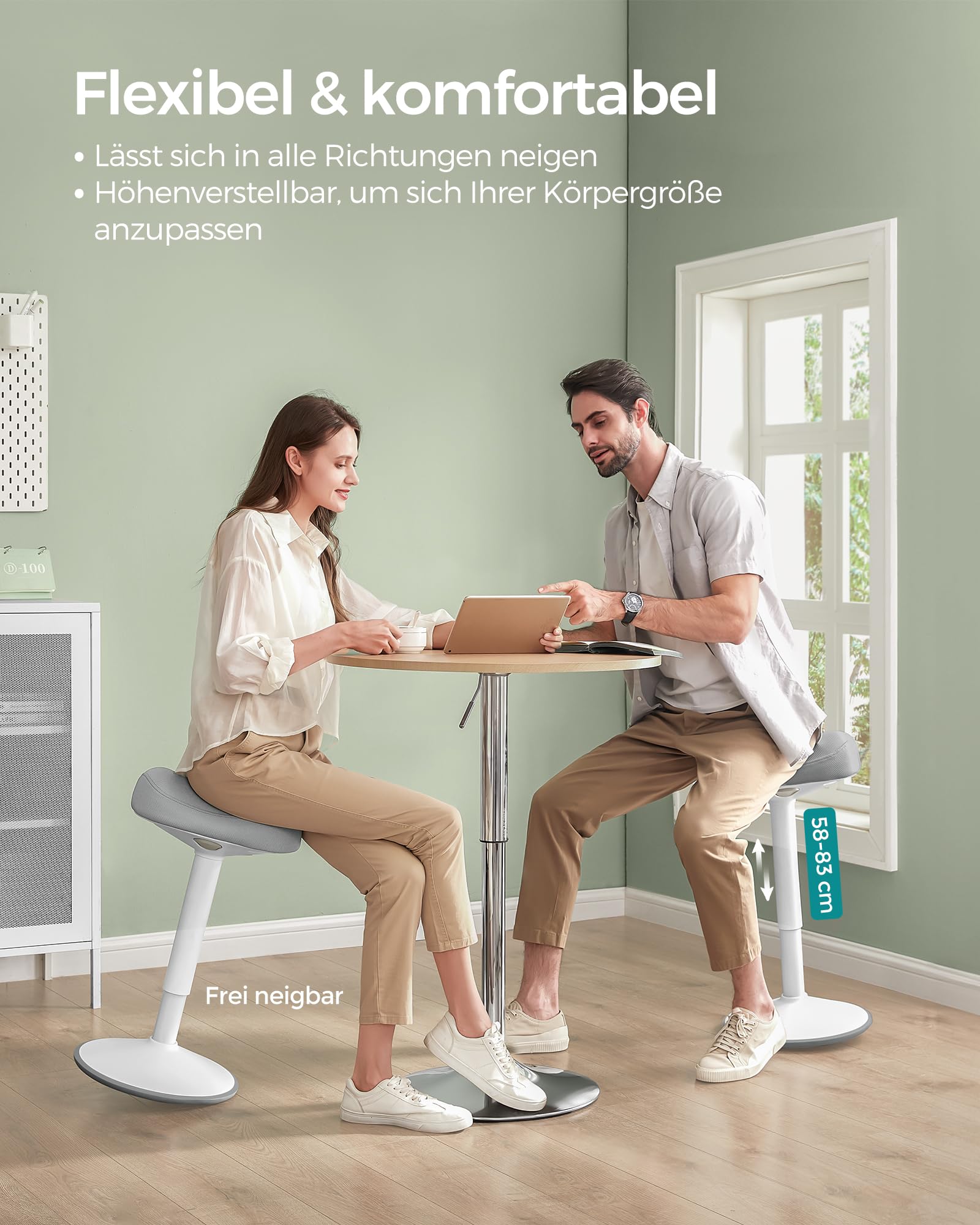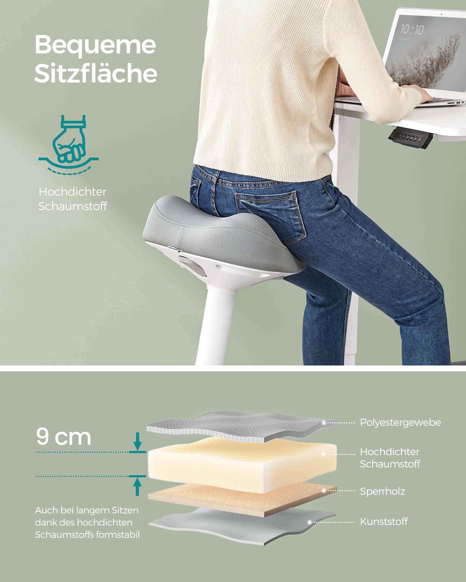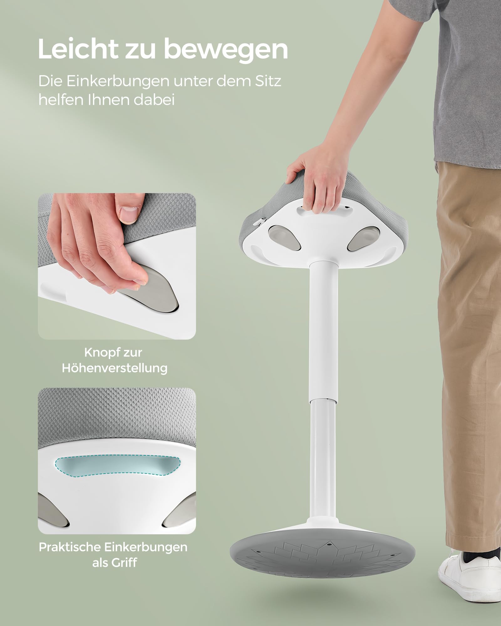 Dieser moderne Stehhocker von SONGMICS ist die ideale Lösung, um Bewegung und ergonomischen Komfort in Ihren Arbeitsalltag zu integrieren. Er kombiniert ein stilvolles Design mit durchdachter Funktionalität für ein gesünderes Sitzerlebnis.