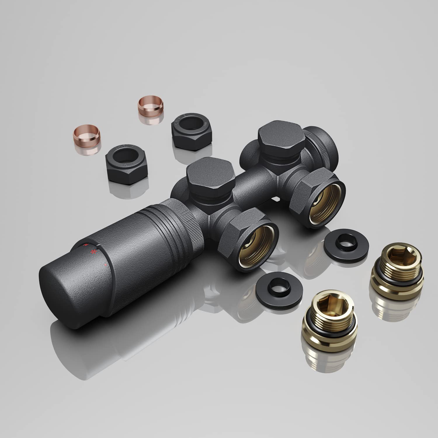 SONNI Multiblock Set Heizkörper Anschlussventil Eck/Durchgang Anthrazit