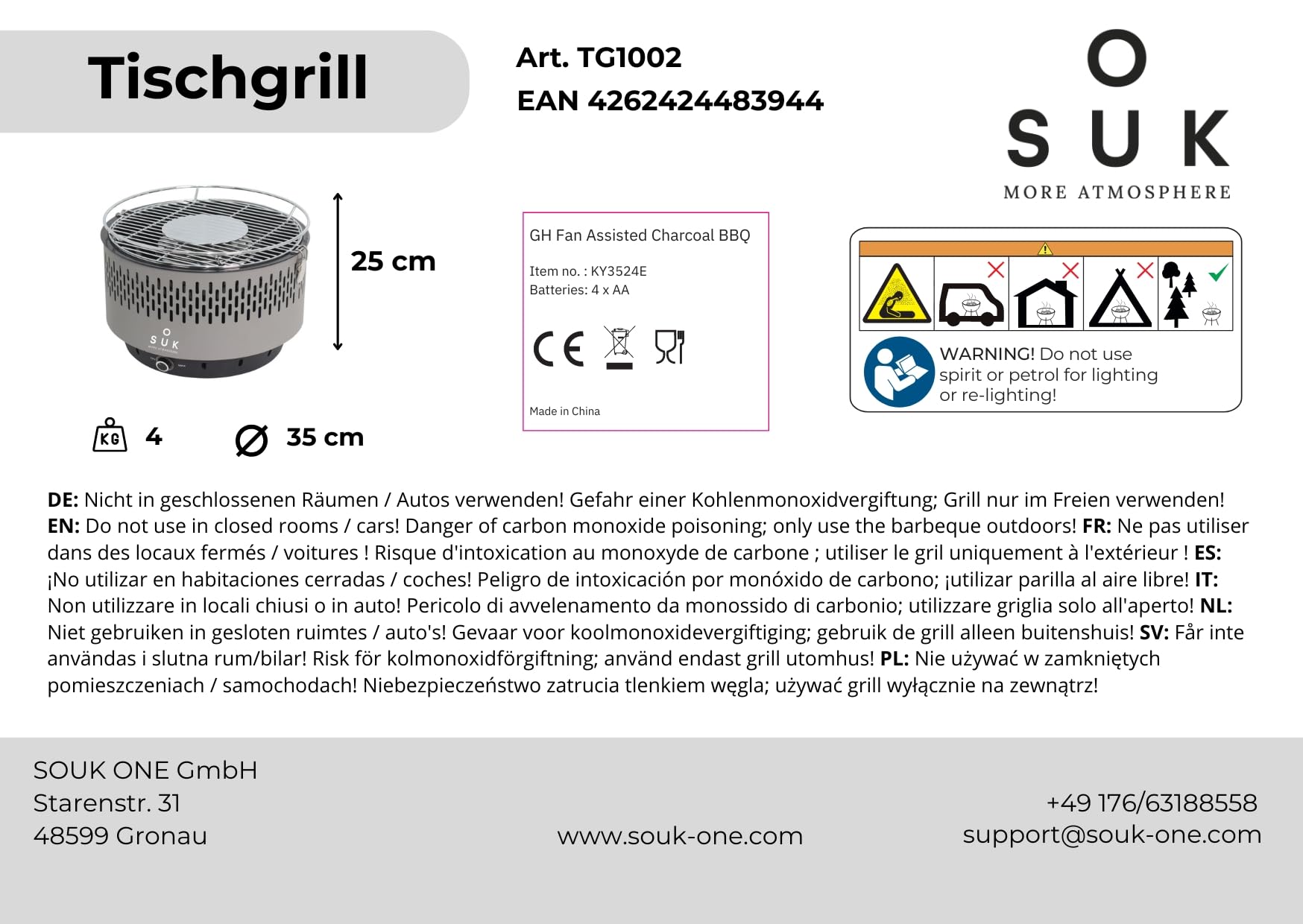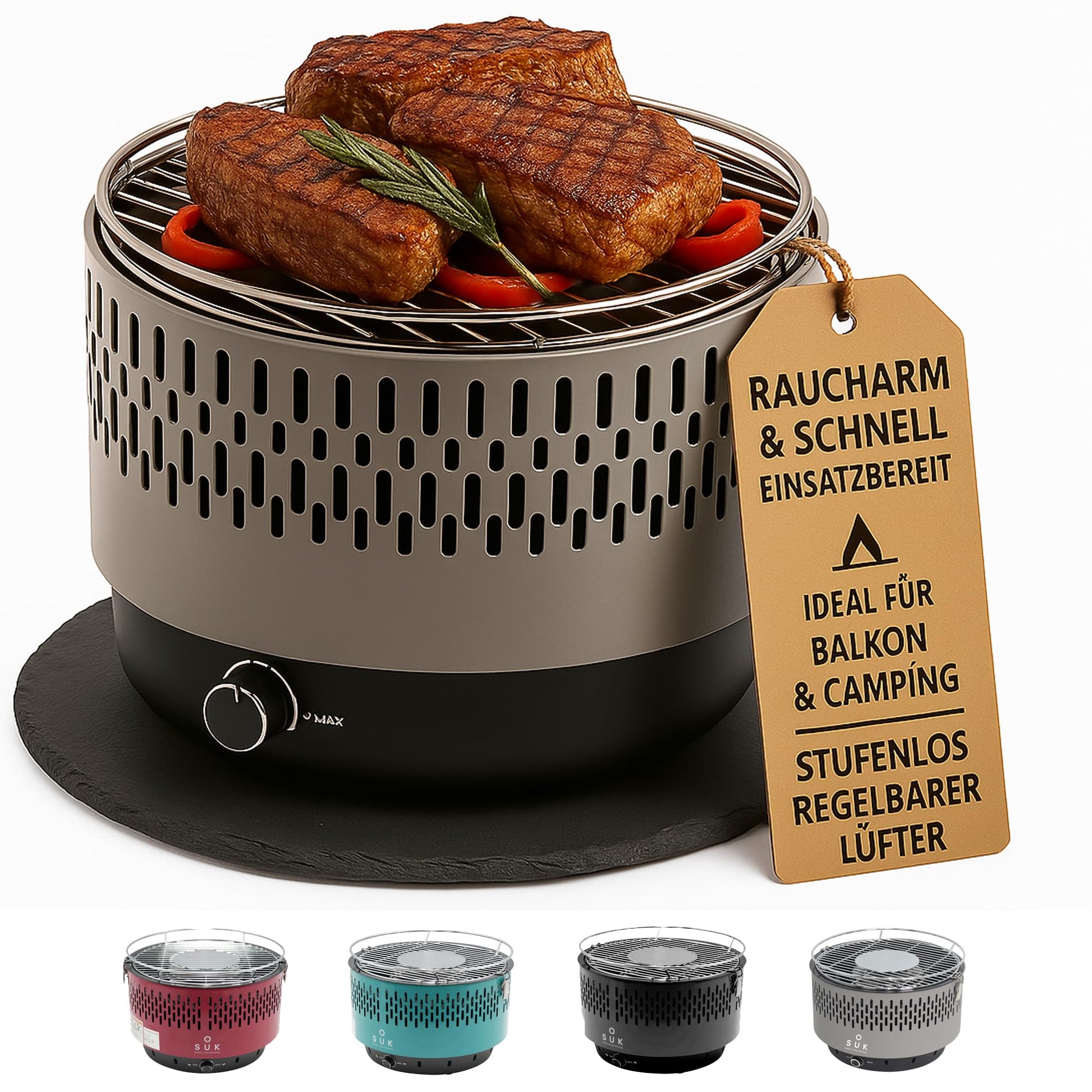SOUK ONE Tischgrill Aktivbelüftung Holzkohlegrill – Grau