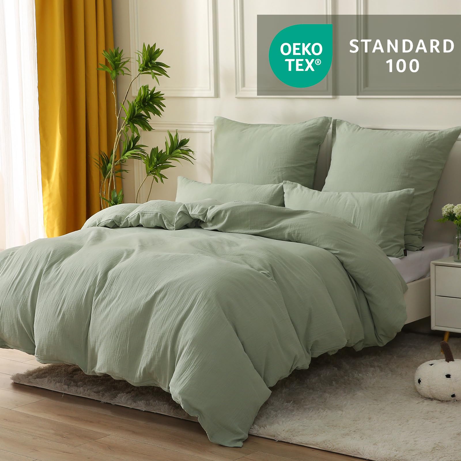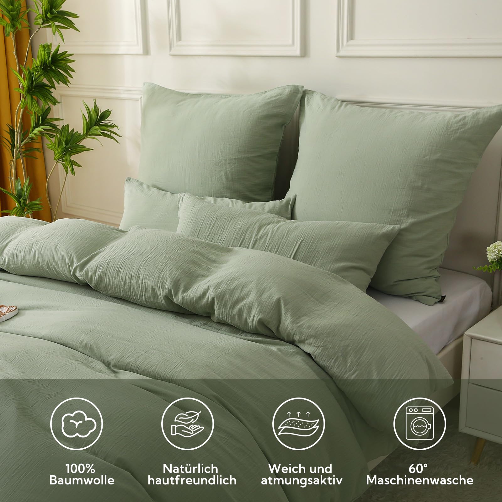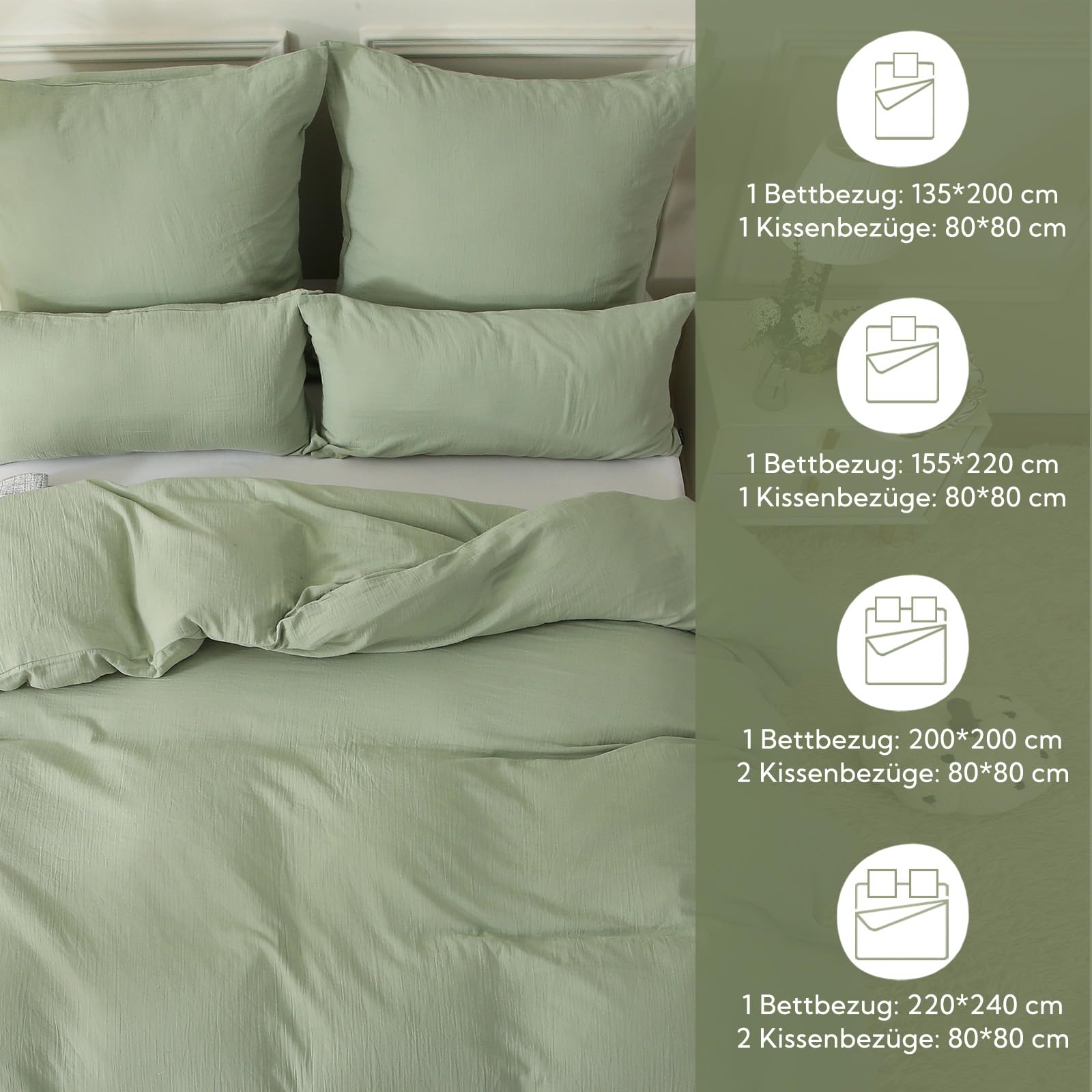 SOULFUL Doppelte Muslin Bettwäsche Set 4-tlg. 135x200 - Lakritzgrün