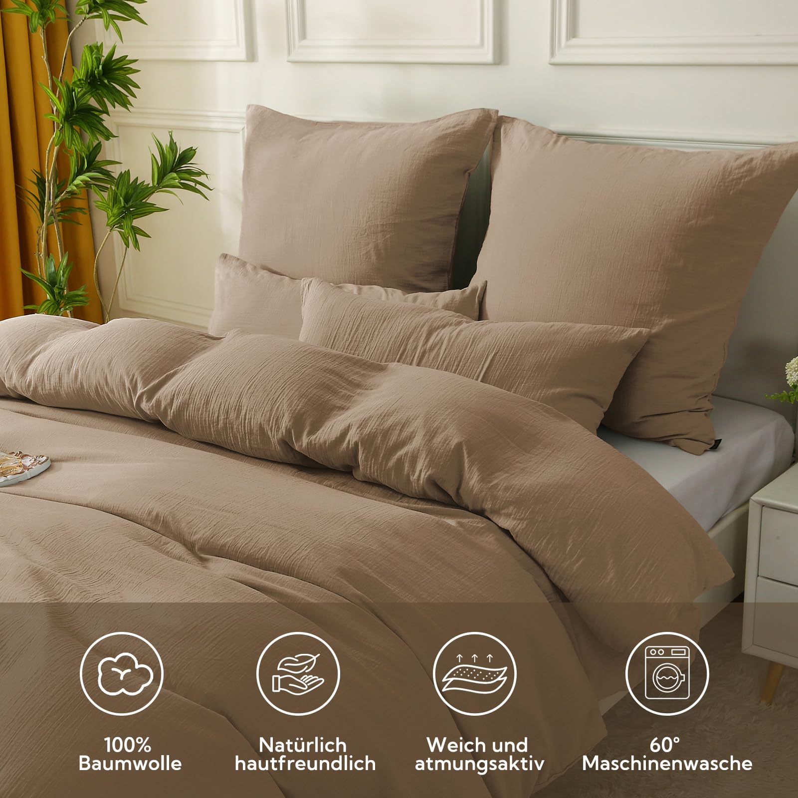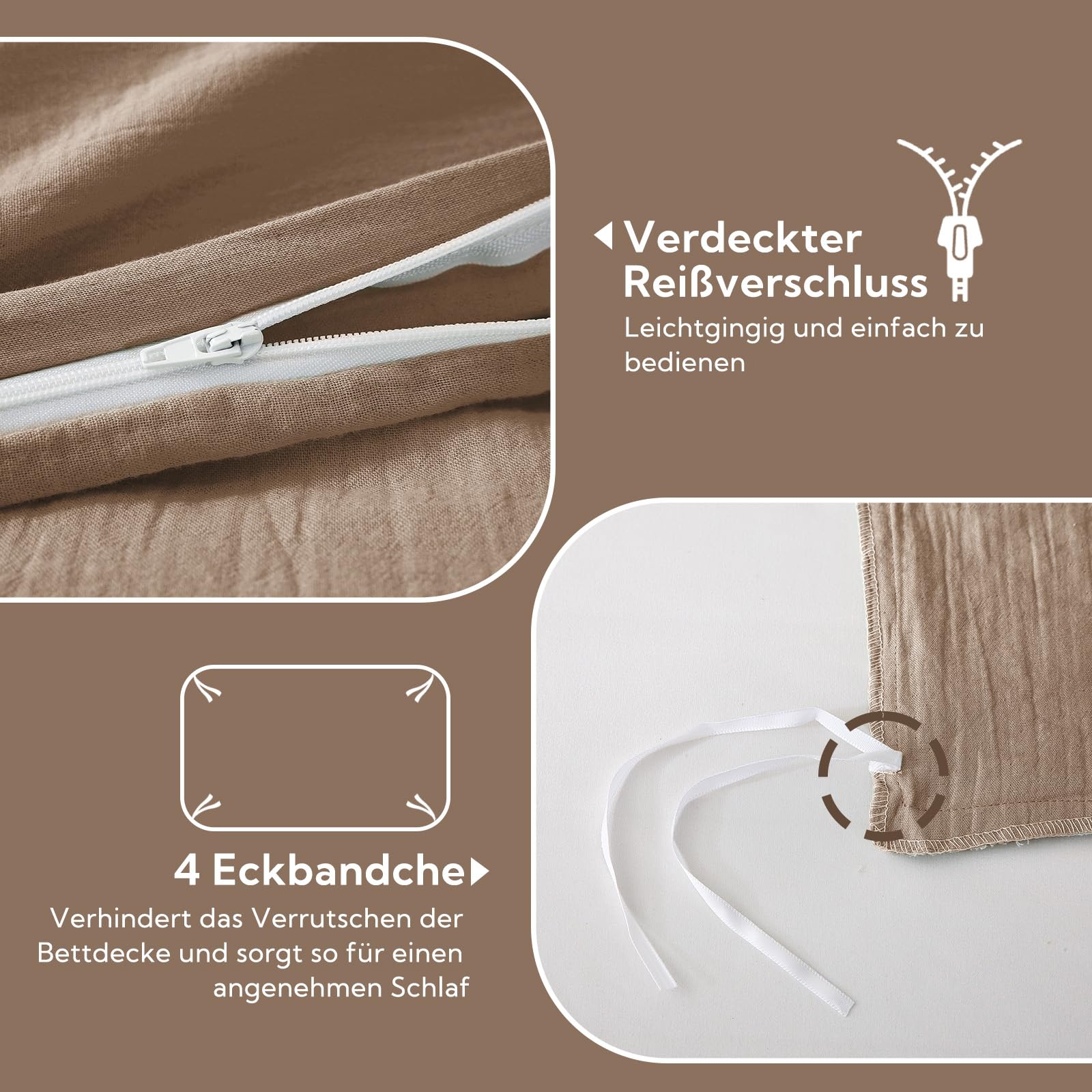 SOULFUL Muslin Baumwoll Bettwäsche Set 135x200 - Dunkler Kaffee