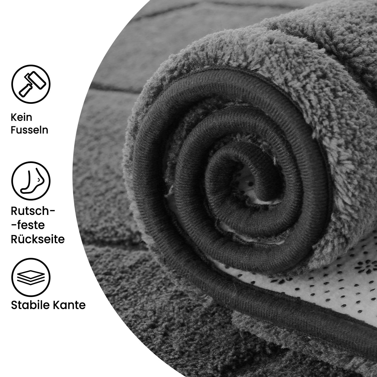- Rutschfeste Unterseite: Tausende kleiner Kunststoffpunkte auf der Rückseite erhöhen die Haftung am Boden und sorgen für einen sicheren Halt ohne Verrutschen.