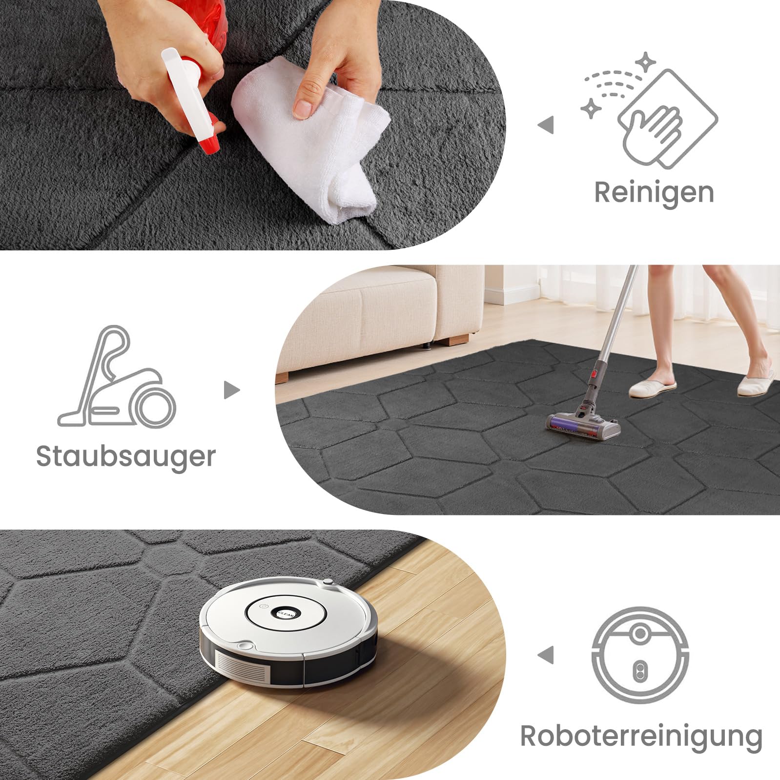 - Samtig-weiche Oberfläche: Gefertigt aus einem angenehmen Fasermaterial, das sich wunderbar weich anfühlt, Staub bindet und zum Barfusslaufen einlädt.