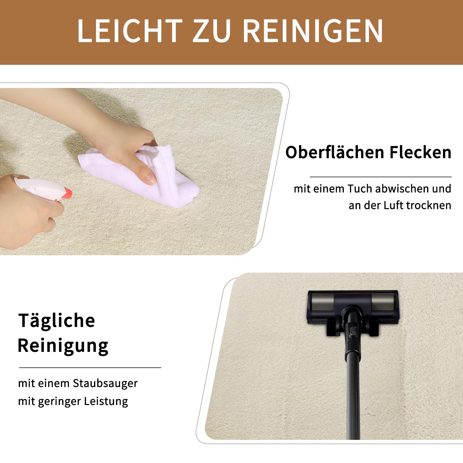 - Einfache Pflege: Der Teppich ist pflegeleicht und waschbar. Für die tägliche Reinigung genügt ein Handstaubsauger, für eine gründlichere Pflege kann er schonend von Hand gewaschen werden.