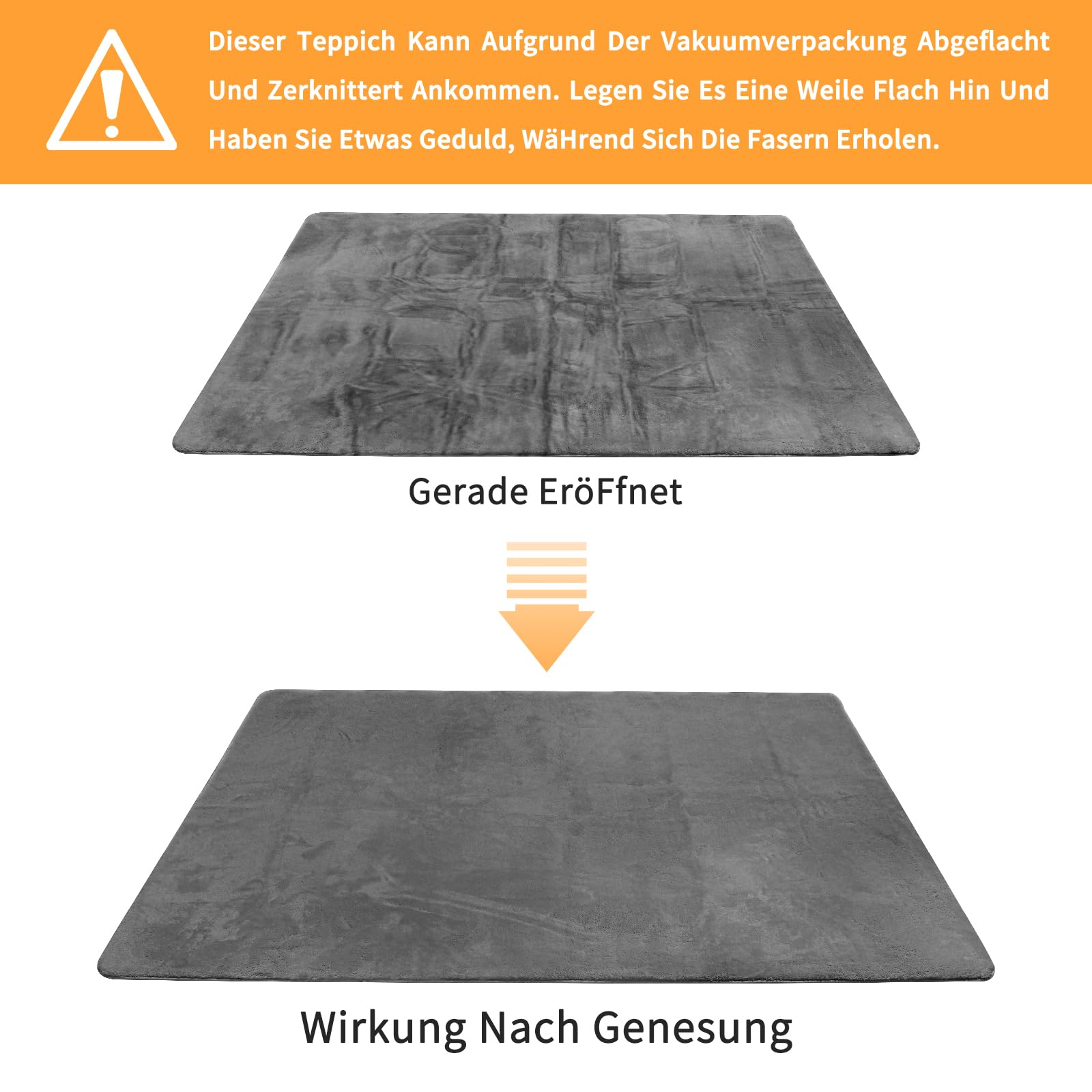 Bitte beachten Sie: Aufgrund der Vakuumverpackung kann der Teppich bei der Ankunft Falten aufweisen und flach wirken. Legen Sie ihn für einige Tage flach aus, damit sich die Fasern vollständig erholen und ihre volle Flauschigkeit entfalten können.