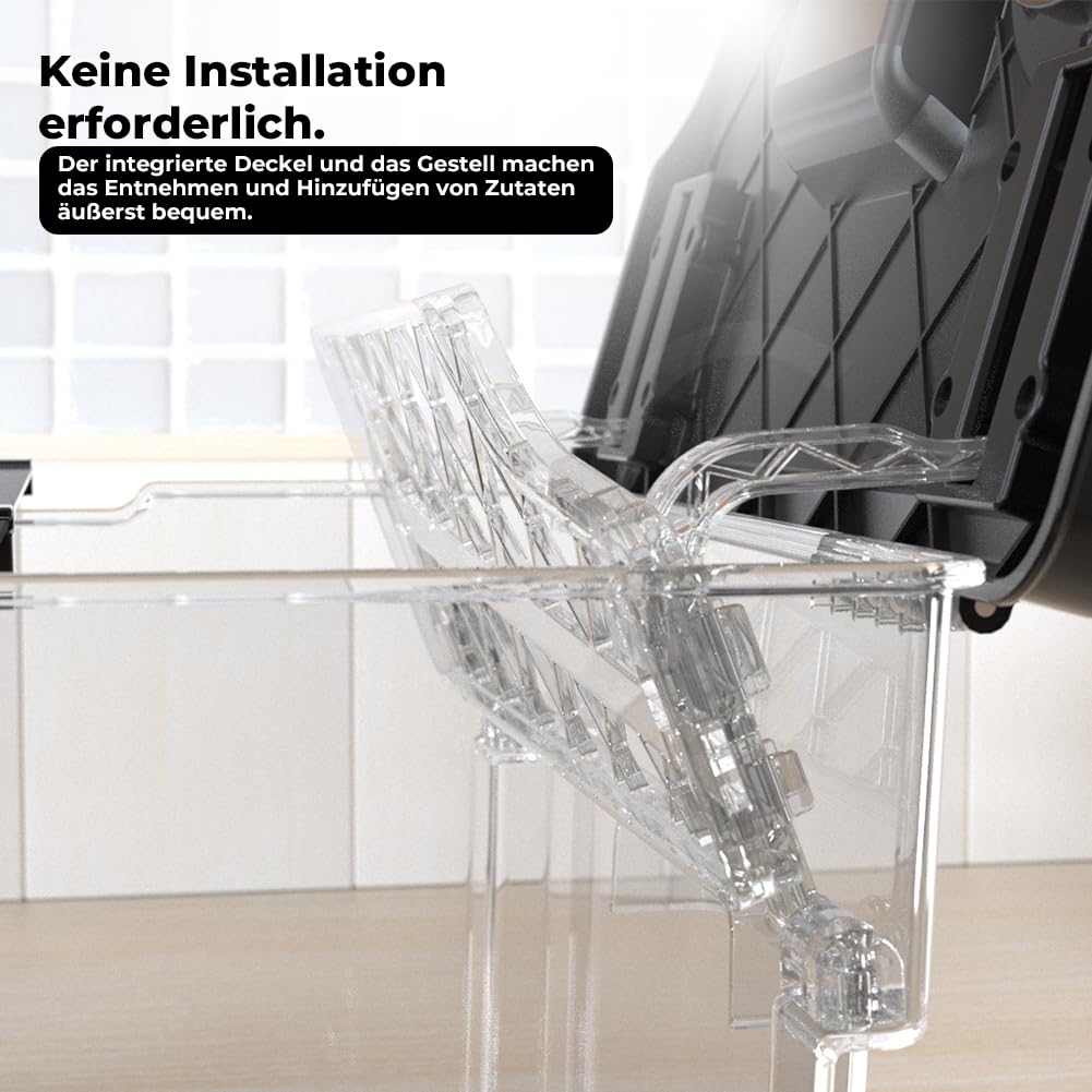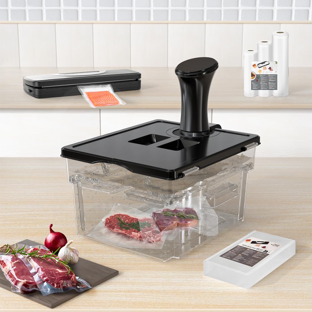 Alles in einem Paket: Dieses Sous-Vide-Set ist die perfekte Startausrüstung. Es beinhaltet den Behälter, den Deckel und das Gestell, sodass Sie kein zusätzliches Zubehör kaufen müssen. Einfach auspacken und mit dem präzisen Garen loslegen.