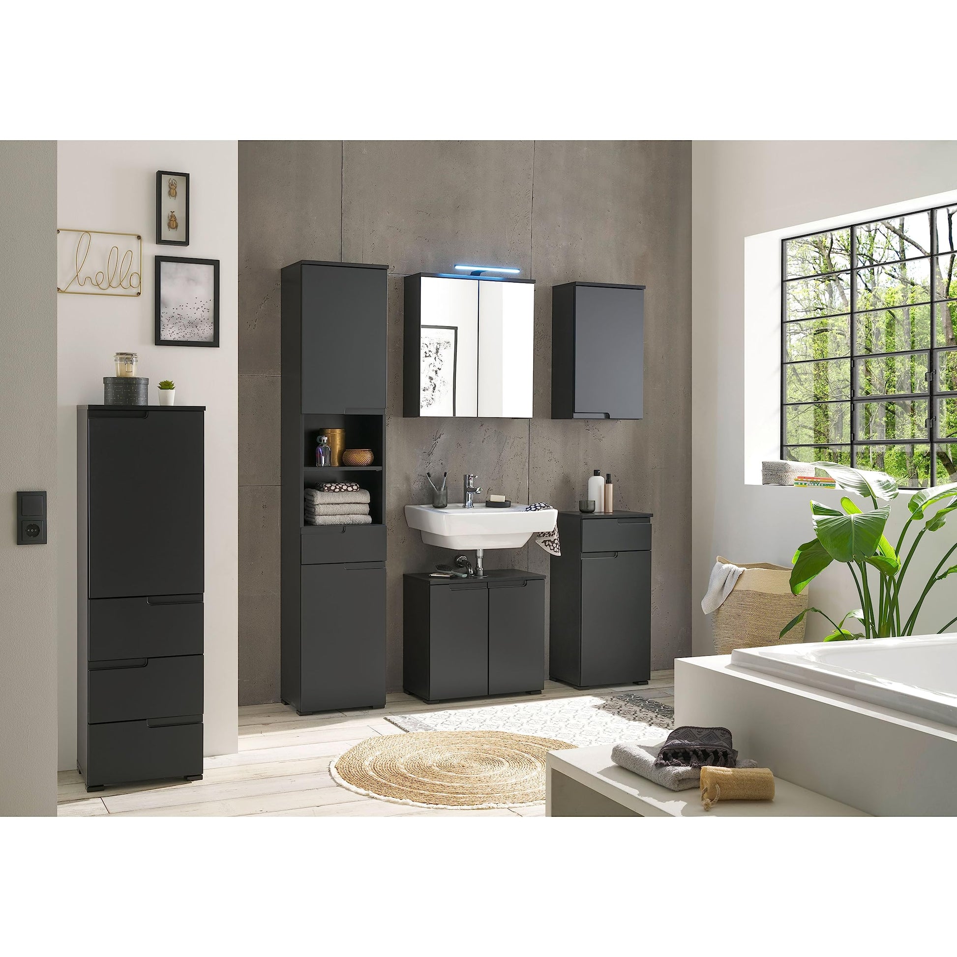 - Stilvolles Design: Grifflose Fronten und eine durchgängig mattschwarze Oberfläche verleihen dem Möbel einen edlen, zeitgemässen Look.