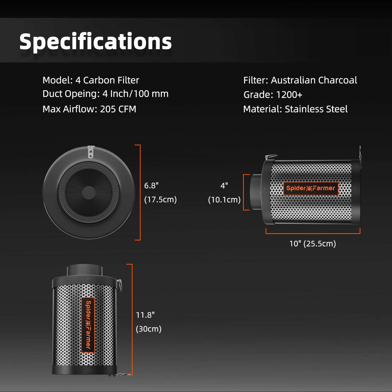 Spider Farmer Aktivkohlefilter Grow Zelt Geruchskontrolle – 100mm