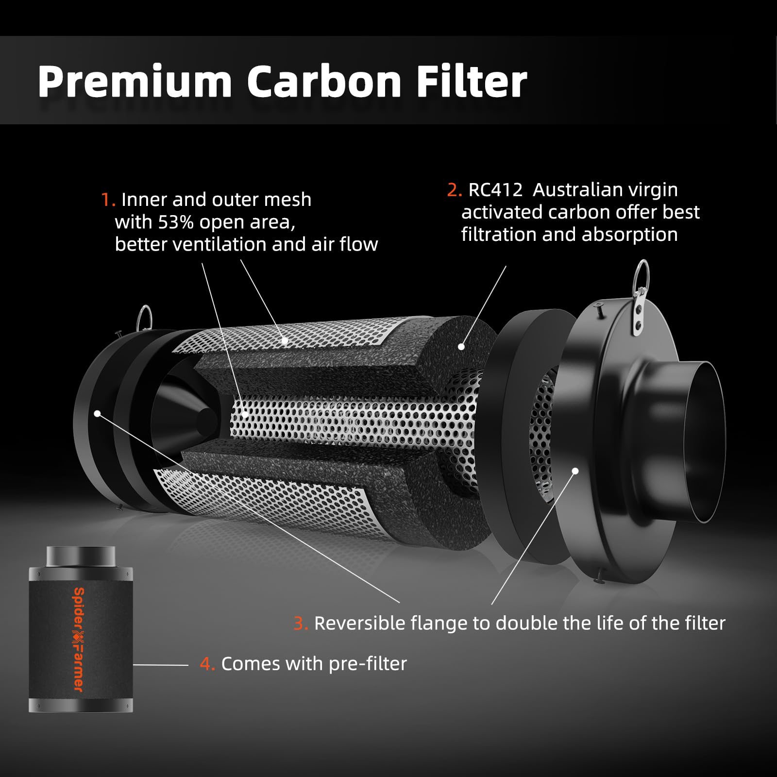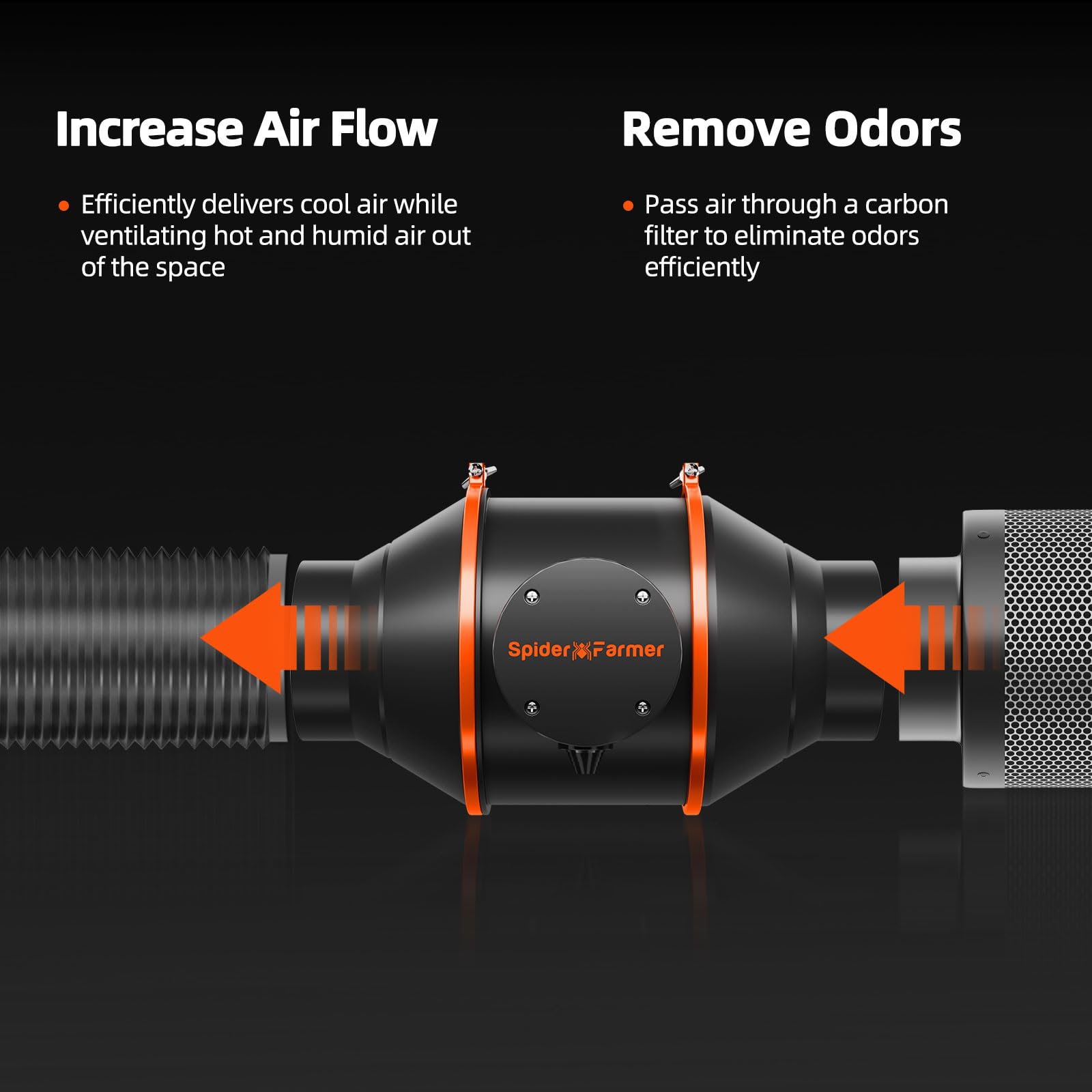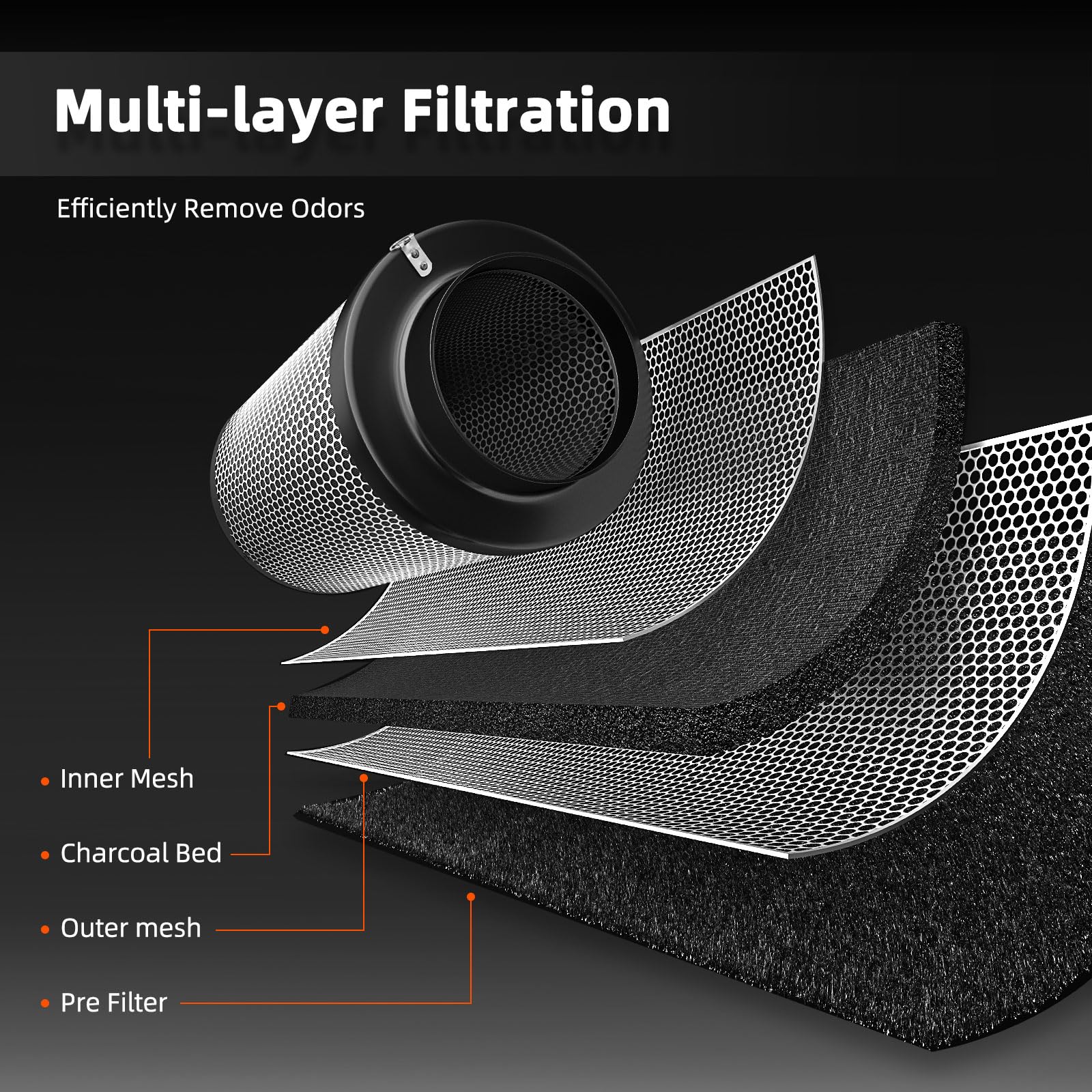 Er ist ideal für eine Vielzahl von Anwendungen, darunter die Geruchskontrolle in Grow-Zelten und Gewächshäusern, Belüftungssysteme in Schränken oder Lagerräumen sowie die allgemeine Luftreinigung zur Beseitigung von Gerüchen und chemischen Reizstoffen in Küchen, Badezimmern und Kellern.