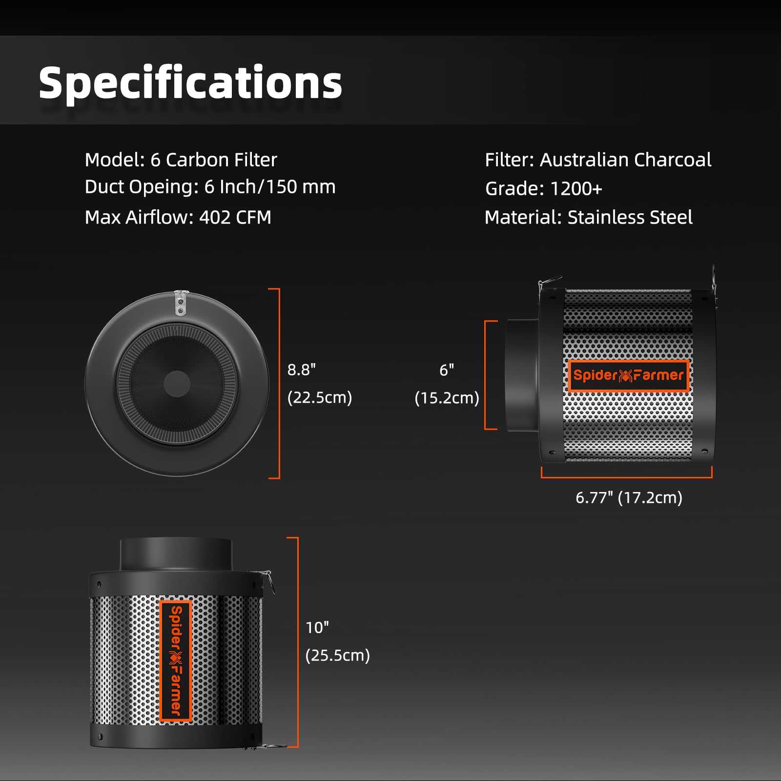 Der Spider Farmer Aktivkohlefilter mit einem 150mm-Anschluss ist die ideale Lösung, um die Luftqualität in geschlossenen Räumen signifikant zu verbessern. Er wurde entwickelt, um unerwünschte Gerüche effizient zu neutralisieren und eine saubere, frische Umgebung zu schaffen.
