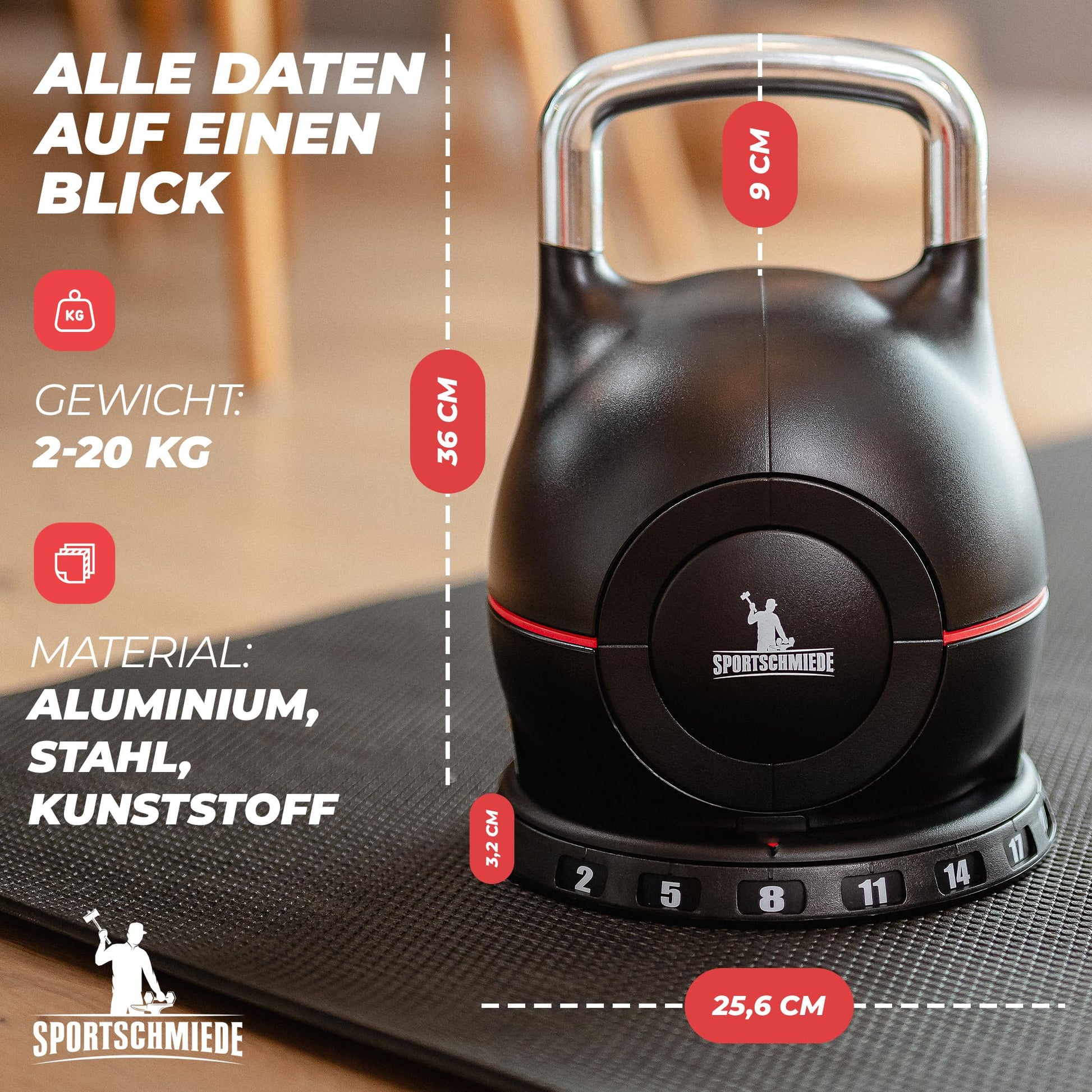 SPORTSCHMIEDE Verstellbare Kettlebell Hantelset Home Gym