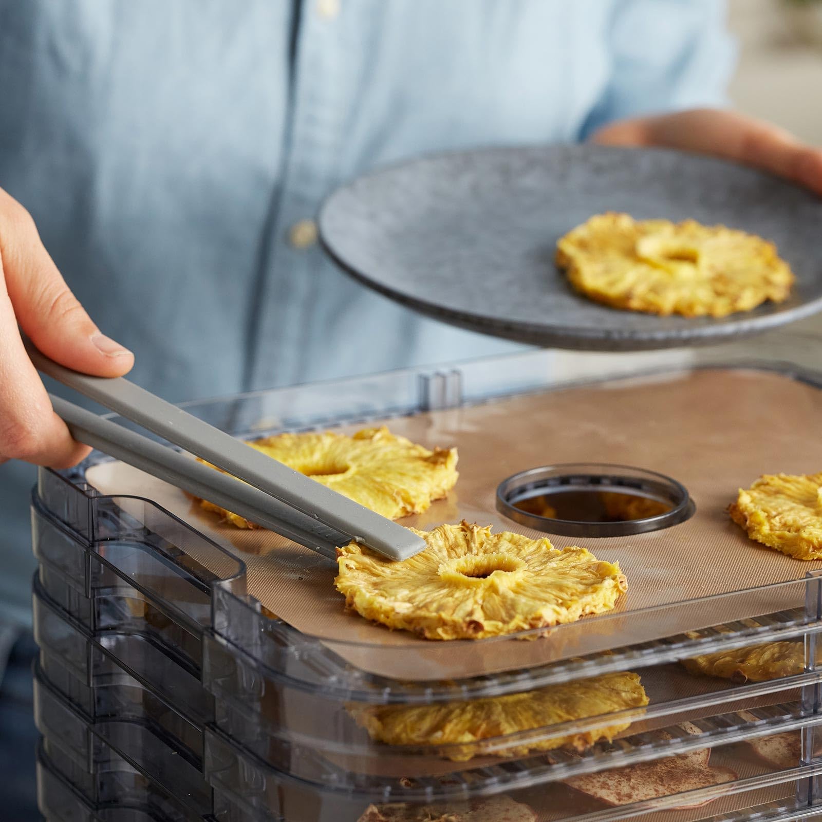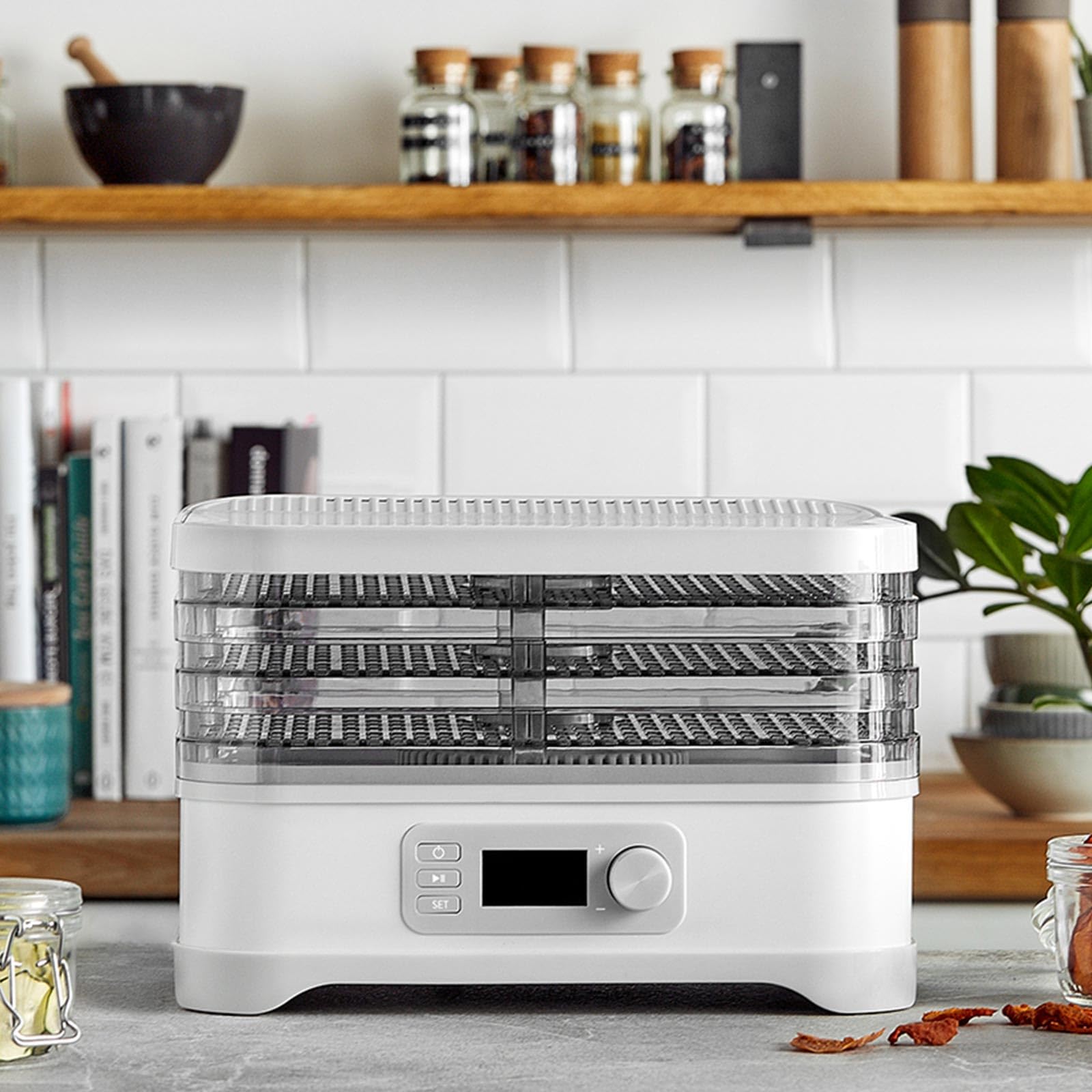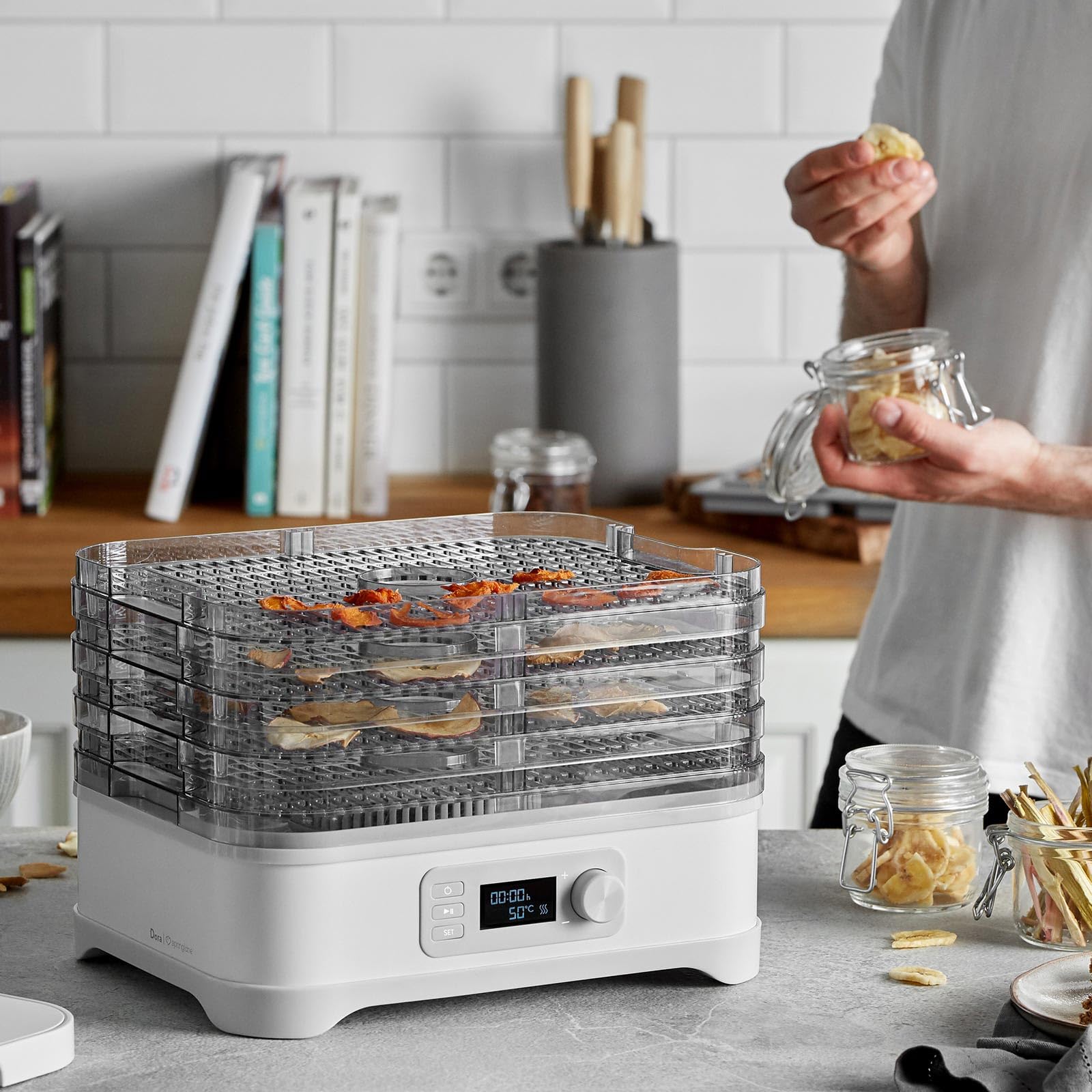 Kreieren Sie Ihre eigenen gesunden Snacks und wissen Sie immer genau, was drin ist. Ob Früchte, Gemüse, Kräuter oder Fleisch – trocknen Sie Ihre Lieblingszutaten schonend und komplett ohne Konservierungsmittel. So bleiben wertvolle Vitamine und Nährstoffe auf natürliche Weise erhalten.