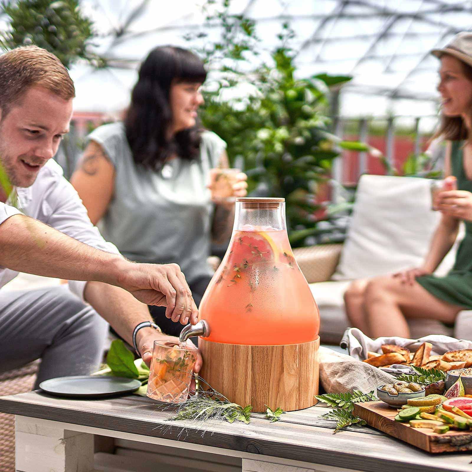 Mit seinem grosszügigen Fassungsvermögen von 5,5 Litern können Sie problemlos zahlreiche Gäste bewirten, ohne ständig nachfüllen zu müssen. Er ist die ideale Wahl für Gartenpartys, Geburtstage oder Apéros und präsentiert Ihre hausgemachten Limonaden, Eistees und Cocktails stilvoll.