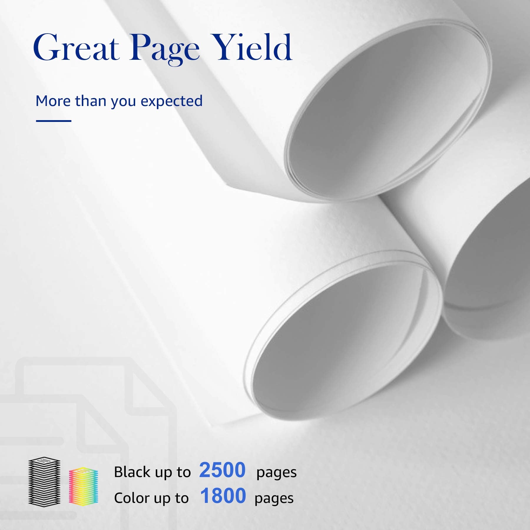 - Hohe Seitenleistung: Drucken Sie bis zu 2'500 Seiten in Schwarz und bis zu 1'800 Seiten pro Farbkartusche (basierend auf 5 % Deckung auf A4-Papier).
