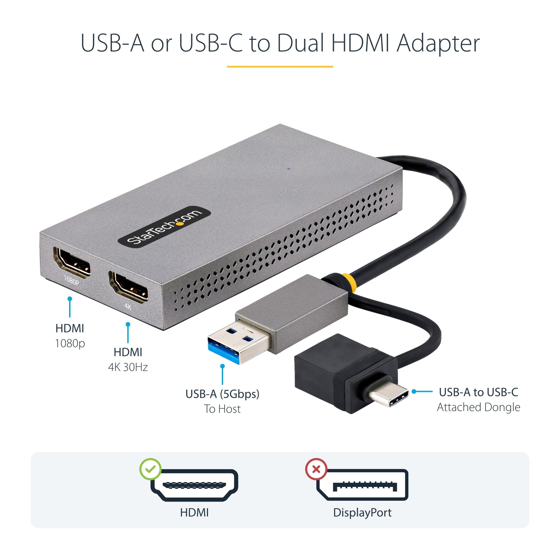 StarTech.com USB A/C HDMI Dual Monitor Adapter 4K (107B-USB-HDMI)