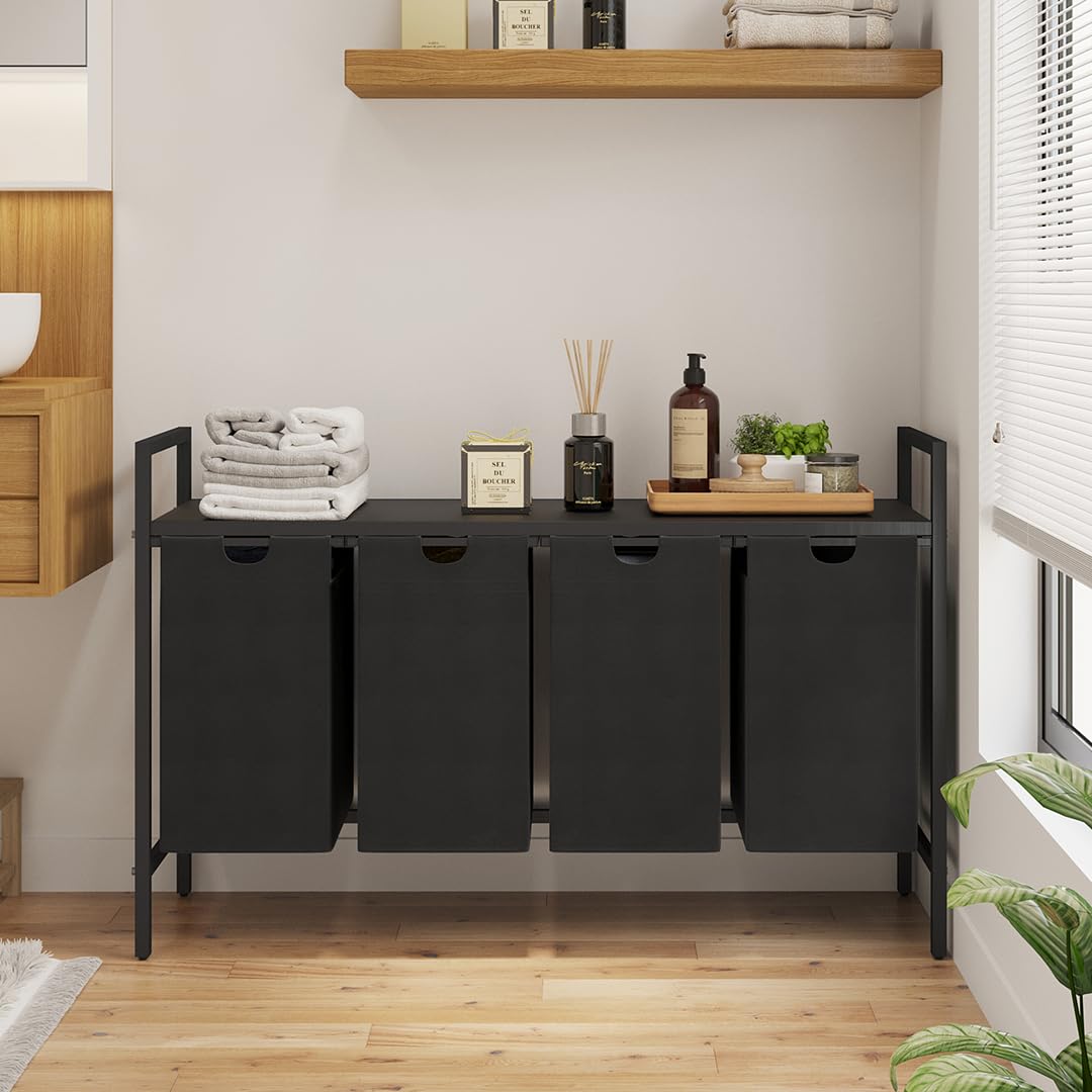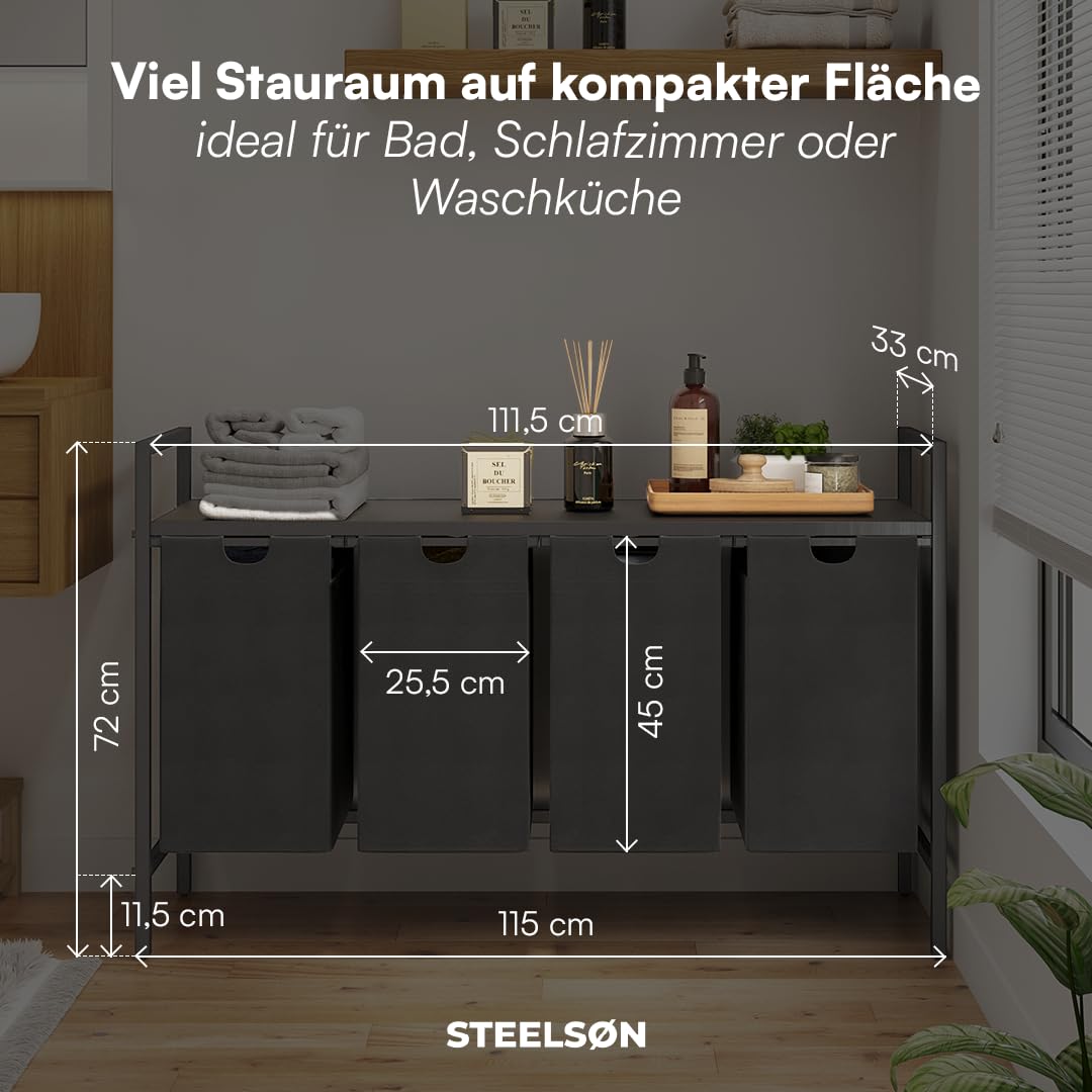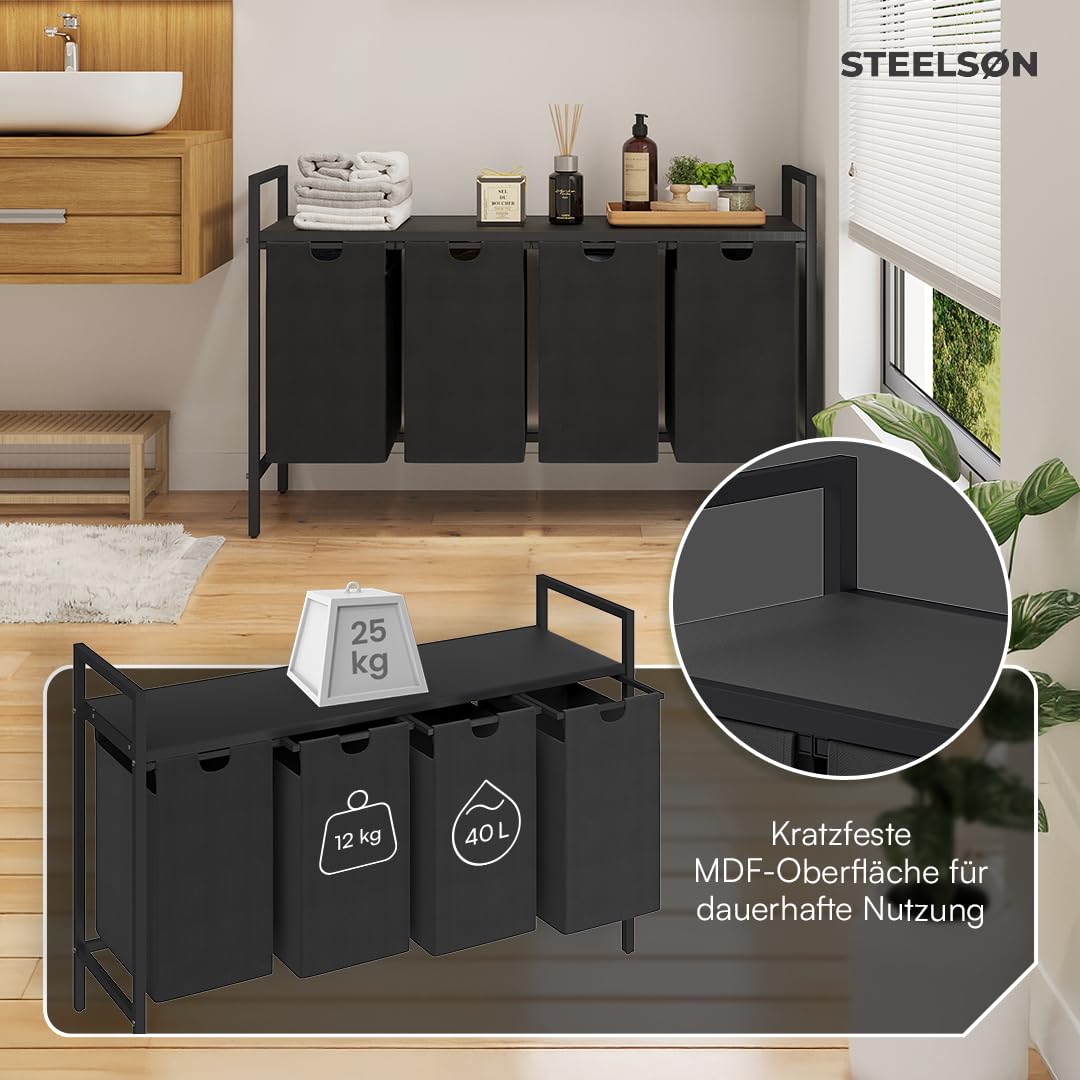 Steelsøn Rigil Wäschesammler 4 Fächer – Metall, Schwarz mit Ablage