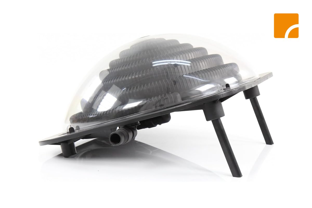 Dank seines cleveren Halbkugeldesigns erzielt dieser Sonnenkollektor eine ausserordentliche Effizienz bei der Wärmeaufnahme. Erleben Sie eine spürbare Temperaturerhöhung Ihres Poolwassers um 1, 2 oder sogar 3 °C, rein durch Sonnenenergie. Für eine noch höhere Heizleistung können Sie einfach mehrere Kollektoren in Serie schalten und die Wirkung vervielfachen.