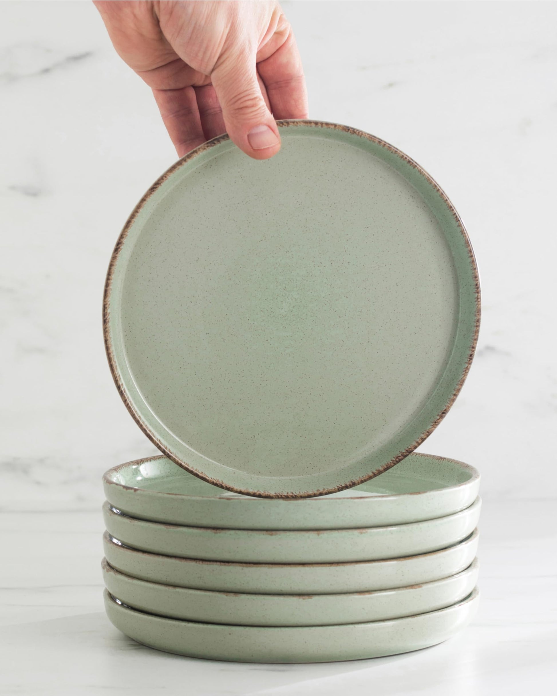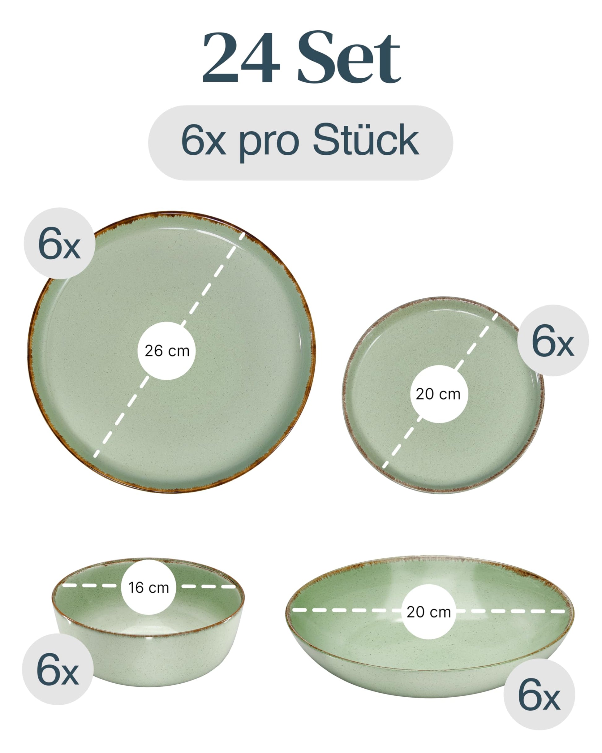 Pure Living Rustic Steingut Geschirrset - 24 tlg. Mintgrün