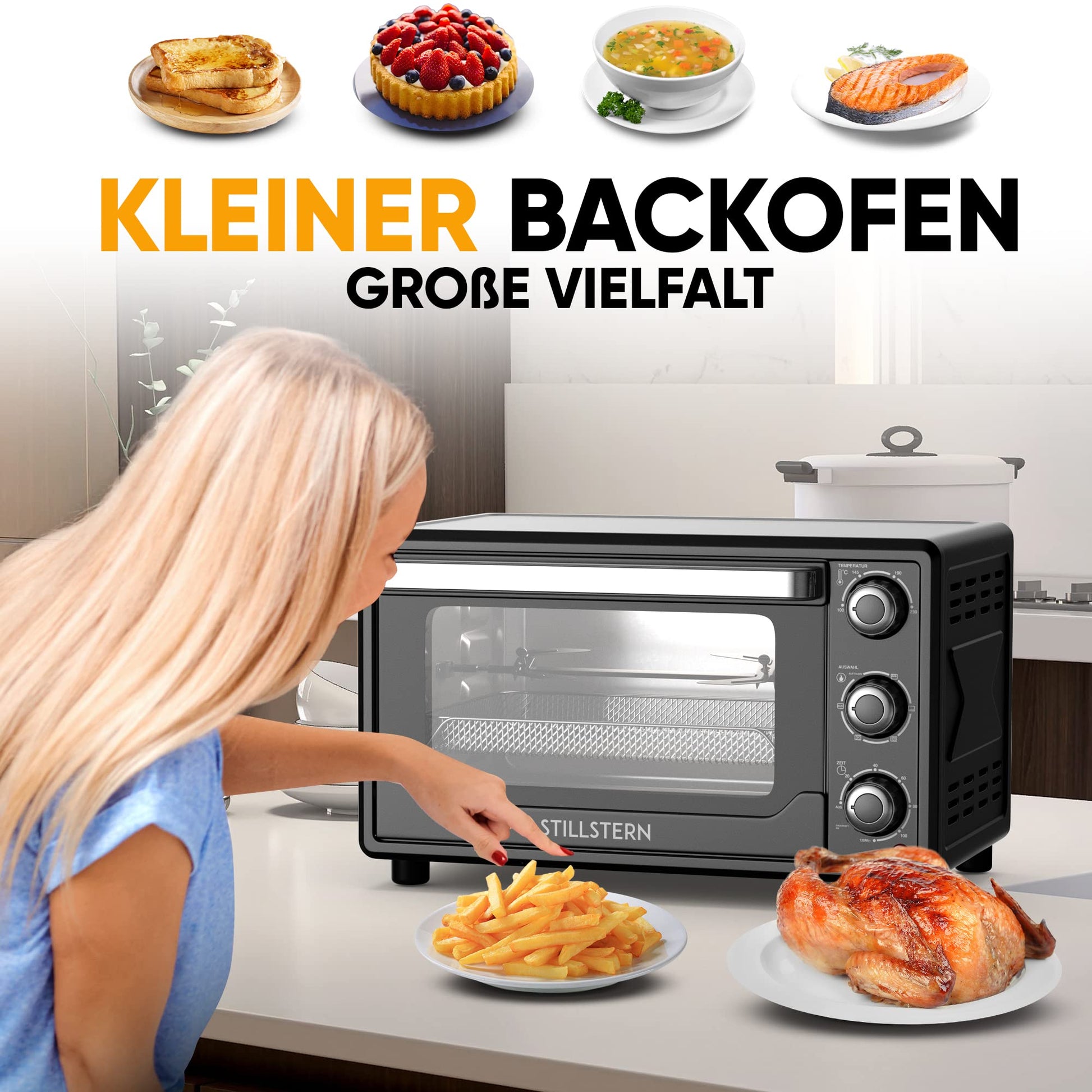 Der Stillstern Minibackofen ist ein vielseitiger und leistungsstarker Küchenhelfer, der modernes Design mit durchdachter Funktionalität vereint. Er ist die ideale Lösung für alle, die auf kleinem Raum grosse kulinarische Ergebnisse erzielen möchten.