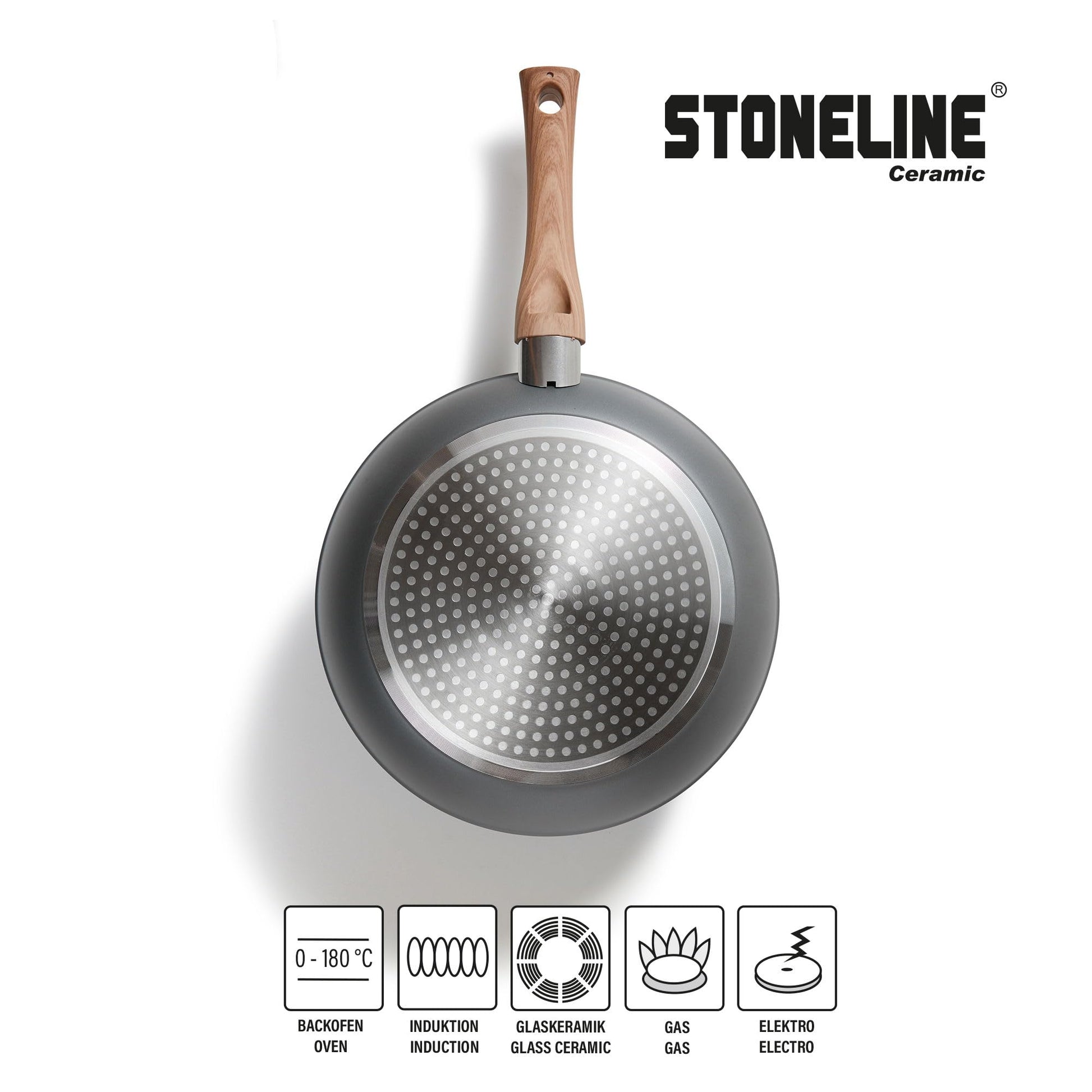 Robuste und langlebige Qualität: Die kratzfeste STONELINE Keramikbeschichtung ist extrem hart und strapazierfähig. Echte Steinpartikel sorgen für eine aussergewöhnliche Robustheit und einen natürlichen Abperleffekt, der das Anbrennen von Speisen verhindert. So haben Sie langanhaltende Freude an Ihrem Kochgeschirr.