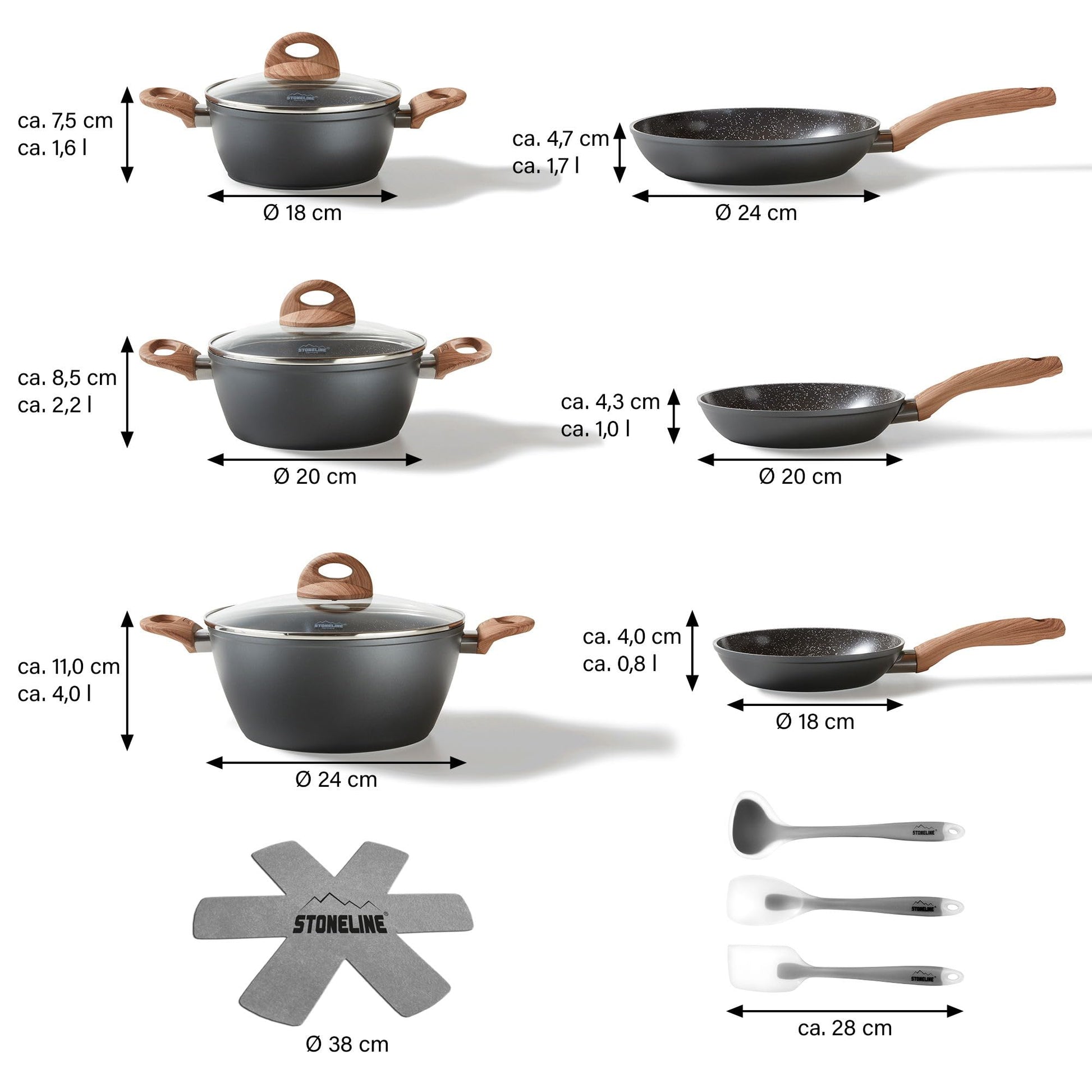 STONELINE Ceramic Kochgeschirr Set 14-tlg. Induktion Holzoptik