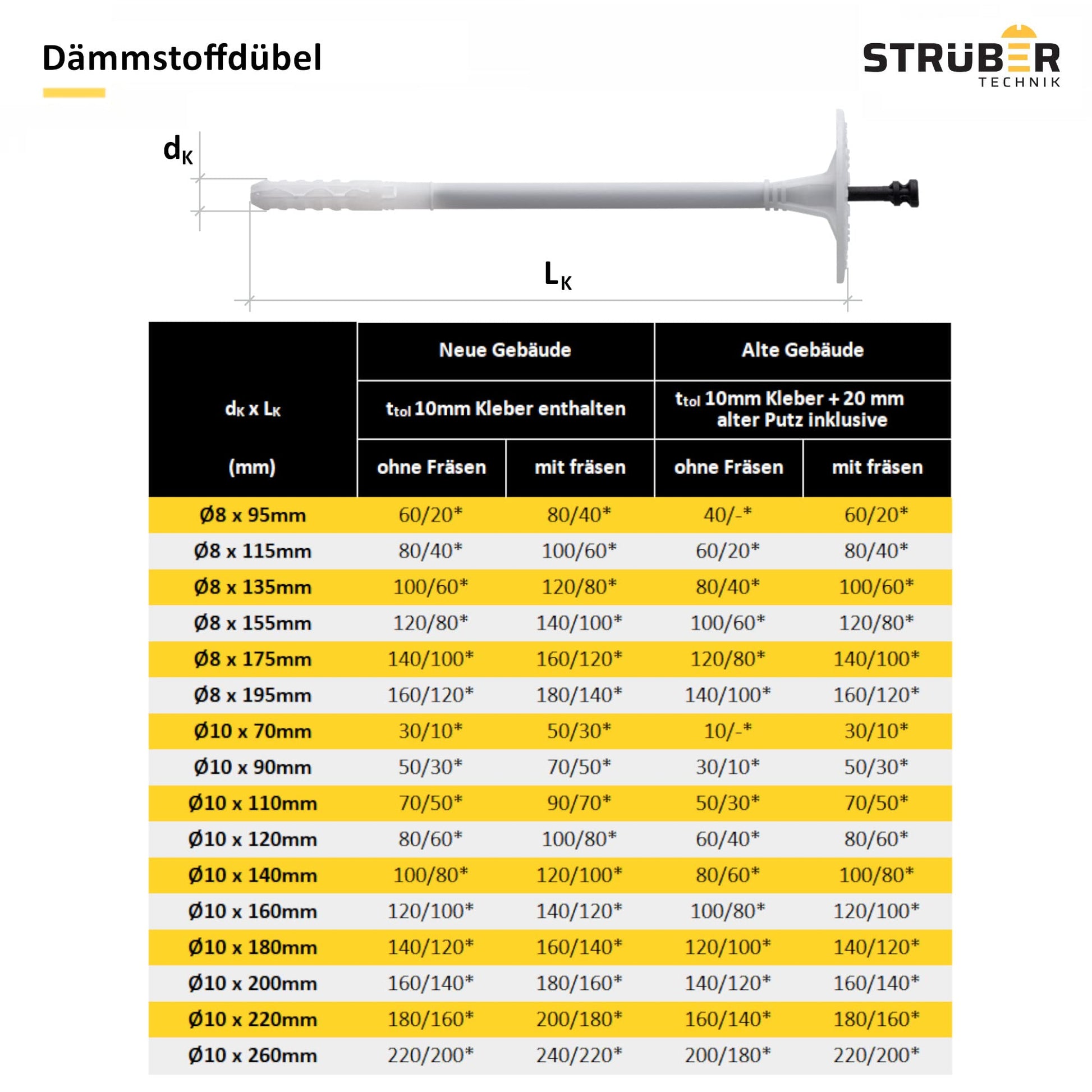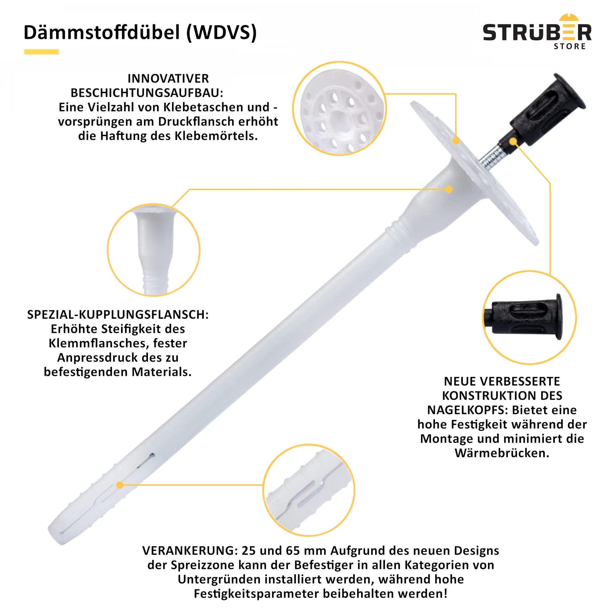 STRÜBER WDVS Set - Dämmstoffdübel Ø10x220mm & Grau Rondelle