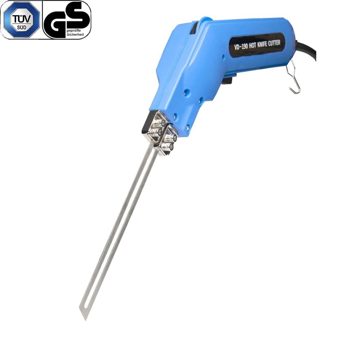 - Umfassendes Zubehör: Das Set beinhaltet das 190W Heissmesser (220V), einen kleinen Schlitzaufsatz, zwei klappbare 30-cm-Klingen, je eine gerade Klinge in 15 cm und 20 cm Länge, eine Reinigungsbürste und einen Inbusschlüssel.