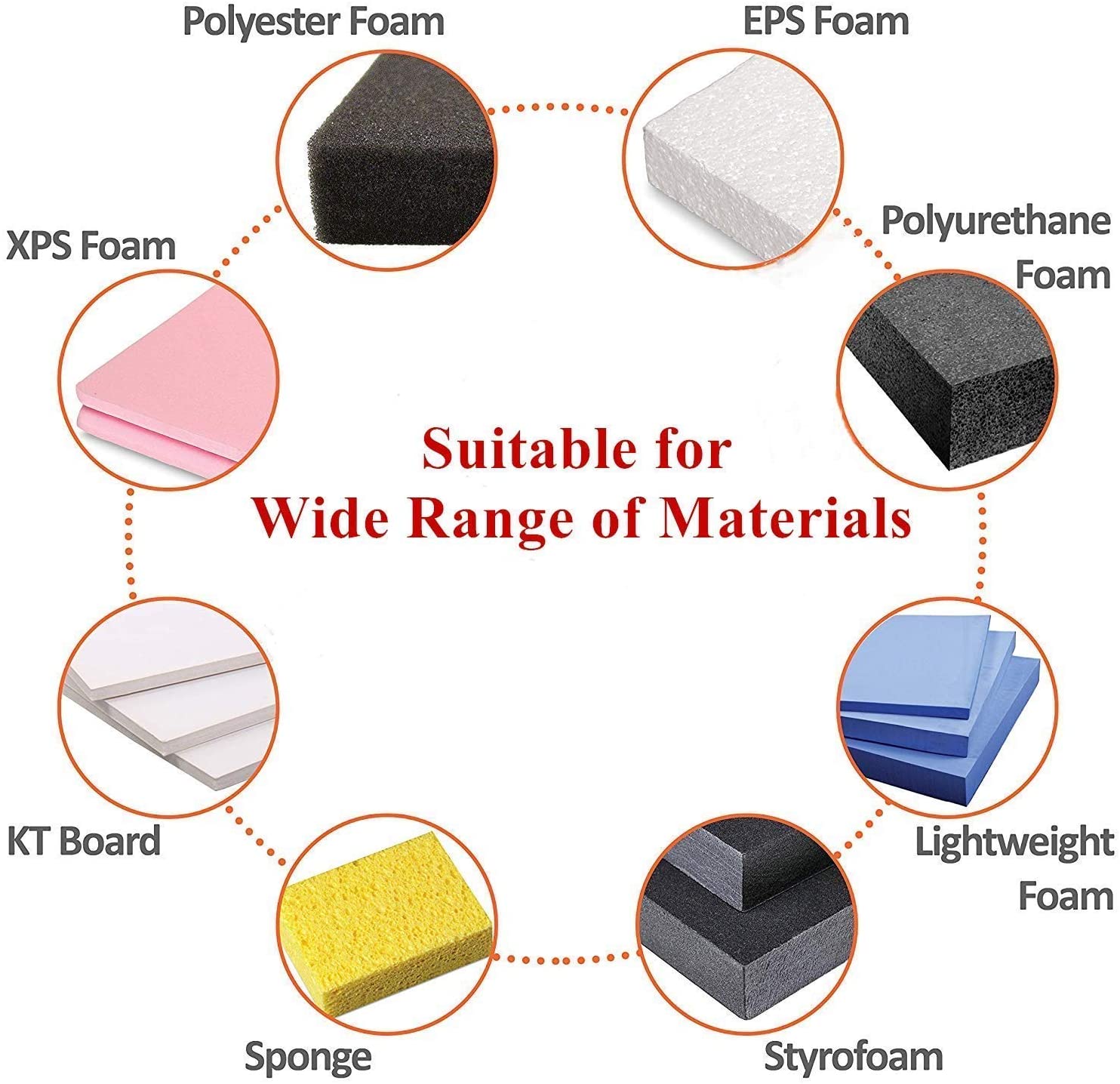 Dieses Werkzeug ist ideal zum Schneiden diverser Schaumstoffe wie Styropor (EPS, XPS), Leichtschaumstoffe, KT-Schaumstoffplatten, Polyurethan, Polyethylen und Polyesterschaum. Es kann auch für Gummi und ähnliche Werkstoffe verwendet werden.