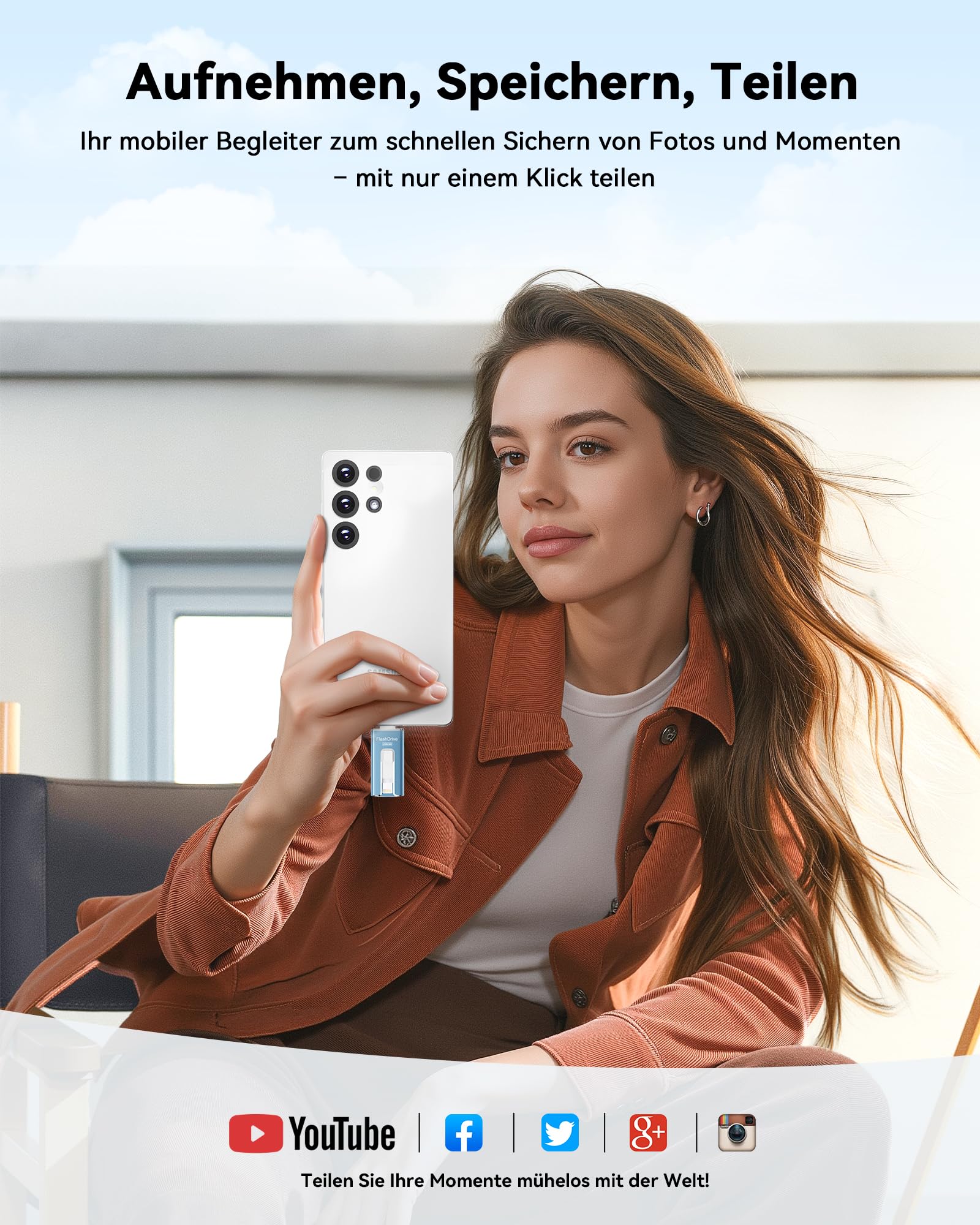 - Einfache Datensicherung: Sichern Sie Ihre Daten mit der zugehörigen App für iOS oder der nativen OTG-Funktion auf Android-Geräten mit nur wenigen Klicks.