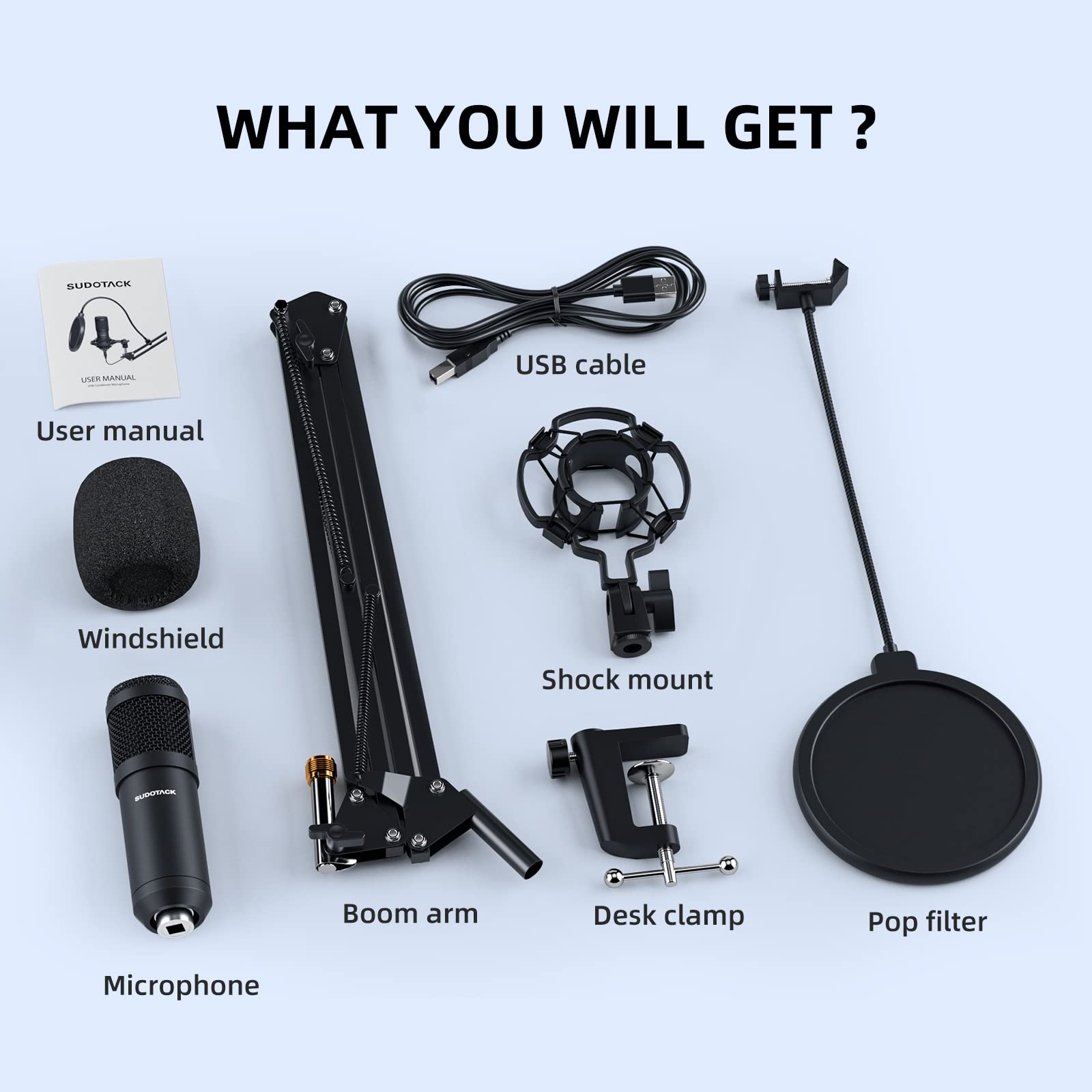 SUDOTACK USB Gaming Mikrofon Kondensator Set - PC Streaming