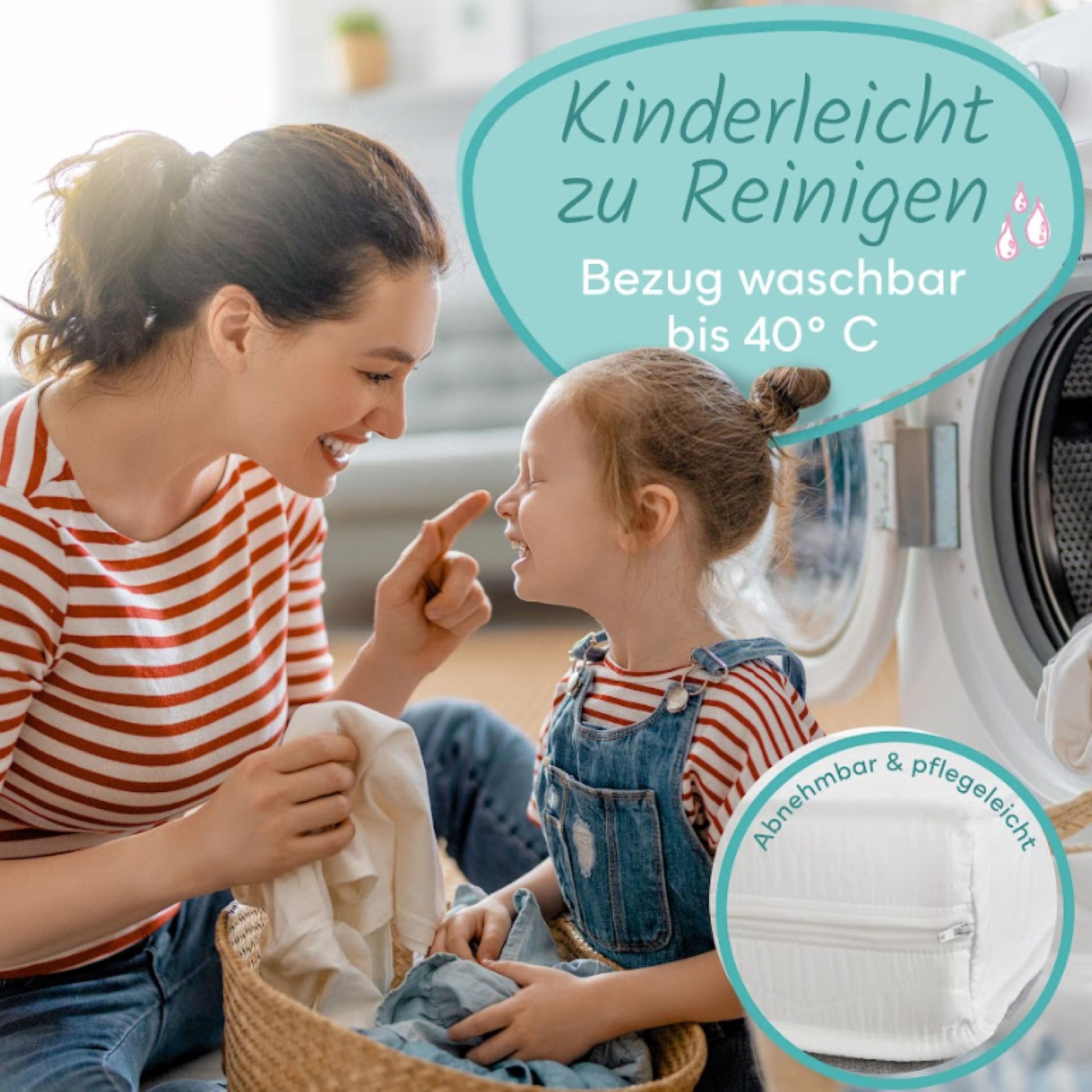 Die Pflege ist sehr unkompliziert. Der Matratzenbezug ist mit einem Reissverschluss ausgestattet, lässt sich dadurch leicht abnehmen und kann bequem in der Waschmaschine bei bis zu 40 °C gewaschen werden. So bleibt das Bett Ihres Kindes jederzeit hygienisch frisch und sauber.