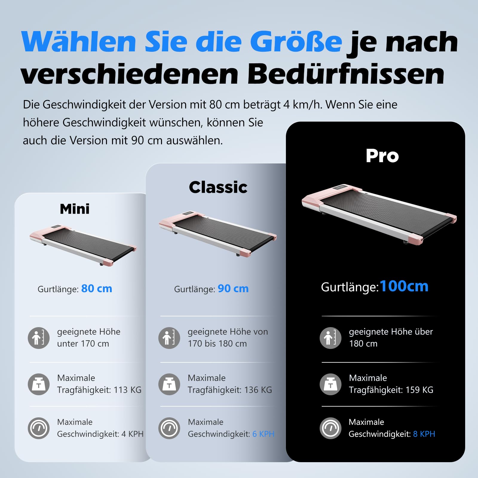 - Anpassbare Grösse: Wählen Sie aus drei Laufbandlängen (80 cm, 90 cm oder 100 cm) die für Sie passende Grösse aus.