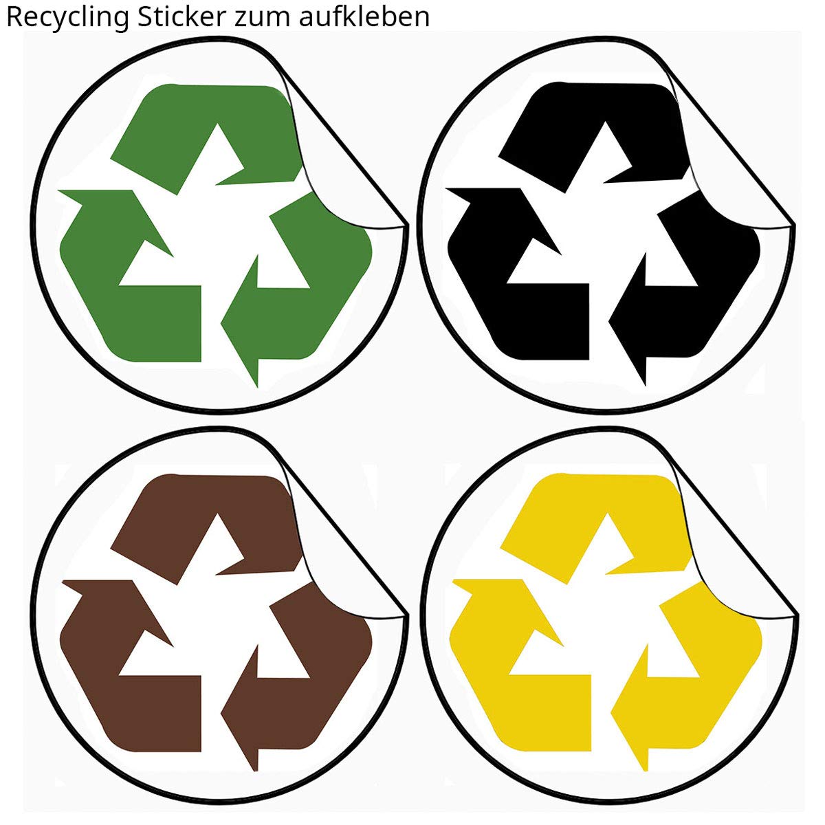 Ja, im Lieferumfang sind vier farbige Recycling-Aufkleber in Braun, Grün, Gelb und Schwarz enthalten. Damit können Sie die Fächer eindeutig für die korrekte Mülltrennung markieren.