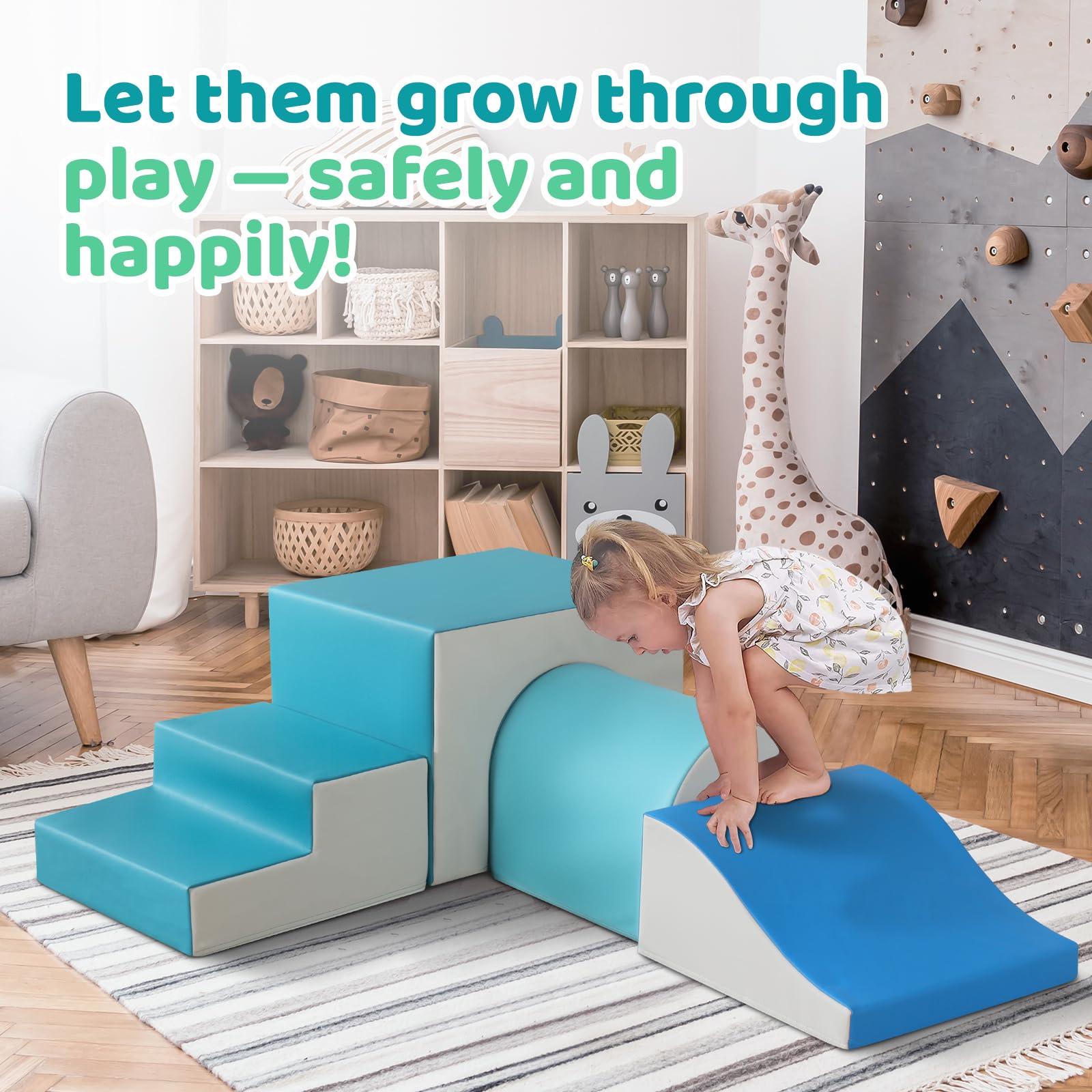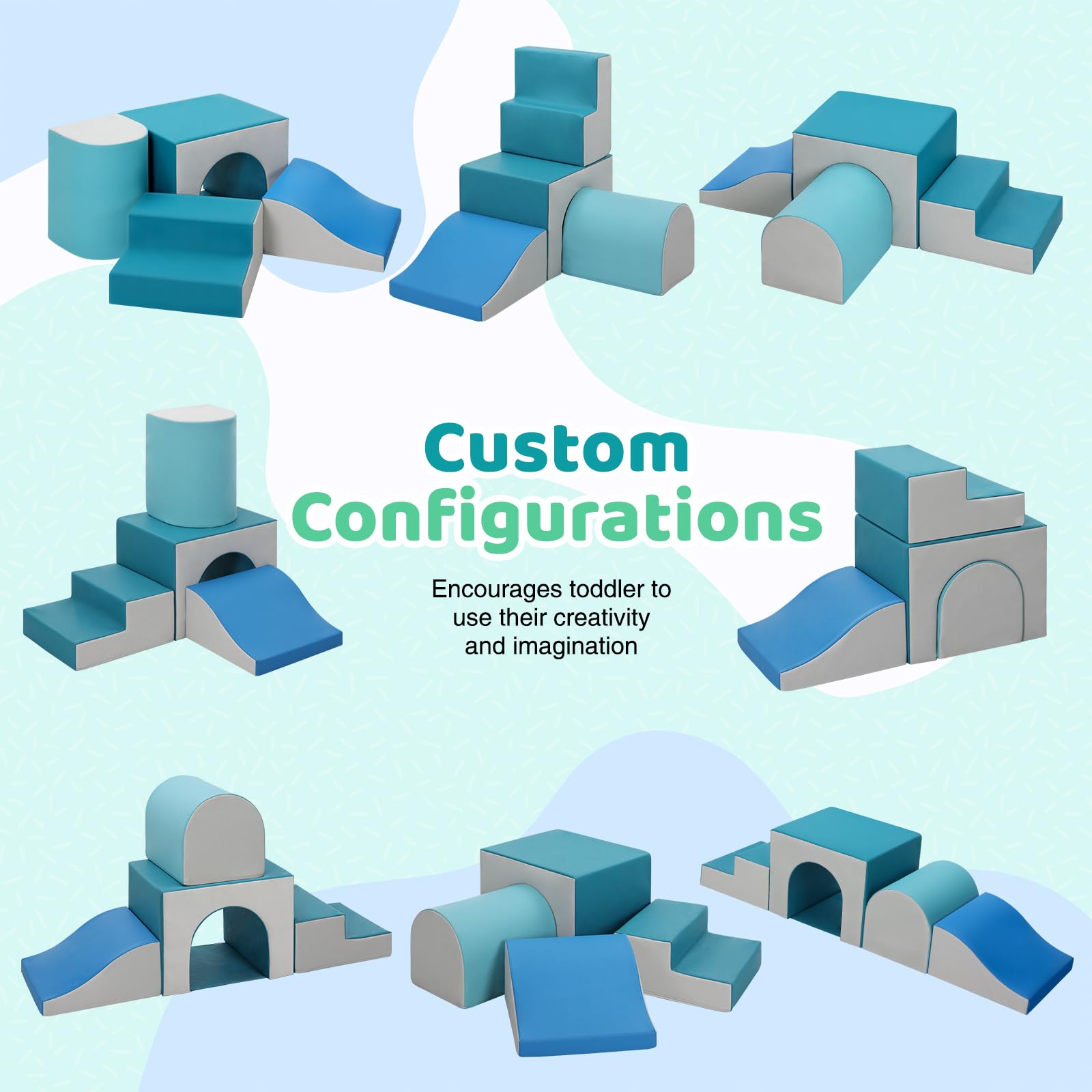 Das Set ist ideal für Kinder ab dem Krabbelalter (ca. 9 Monate) bis ins frühe Kleinkindalter. Es wächst mit den Fähigkeiten Ihres Kindes mit – von den ersten Kletterversuchen bis hin zum Bauen komplexer Hindernisparcours.