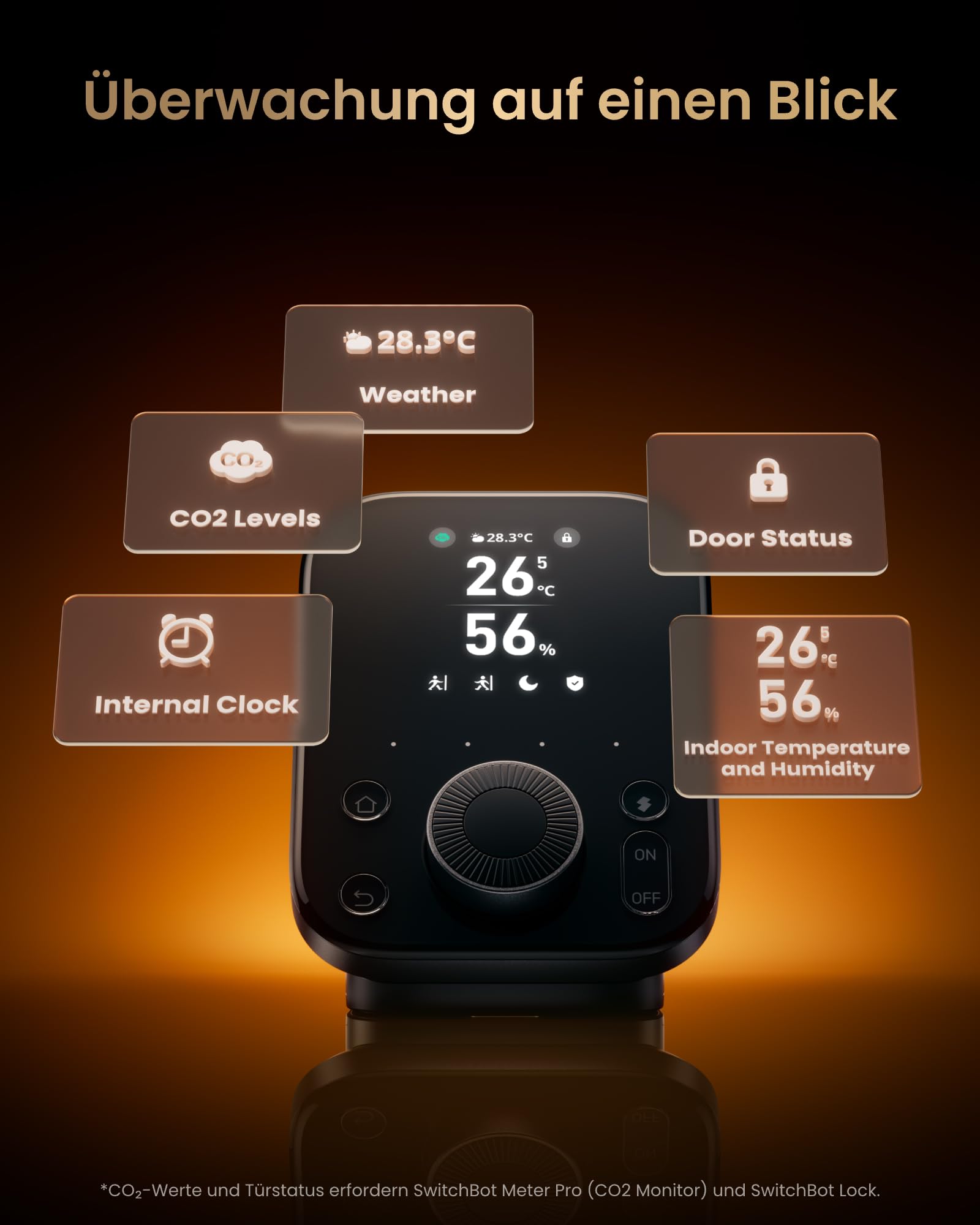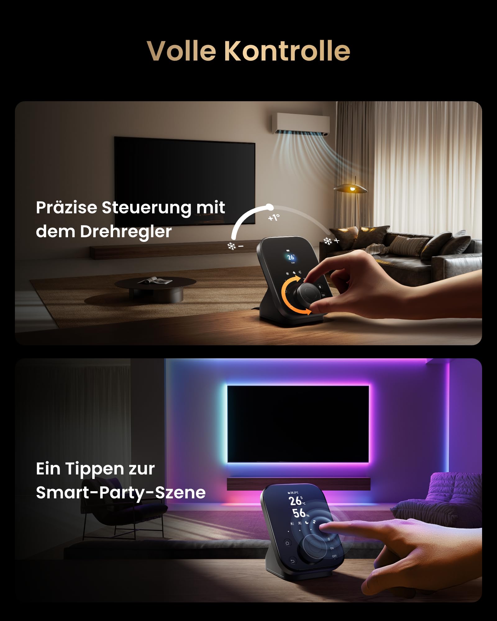 - Integrierter Raumsensor: Fungiert als WLAN-Thermometer und Hygrometer mit einem hochpräzisen Sensor (±0,2 °C Abweichung) und zeigt Daten auf einem brillanten IPS-Display an.