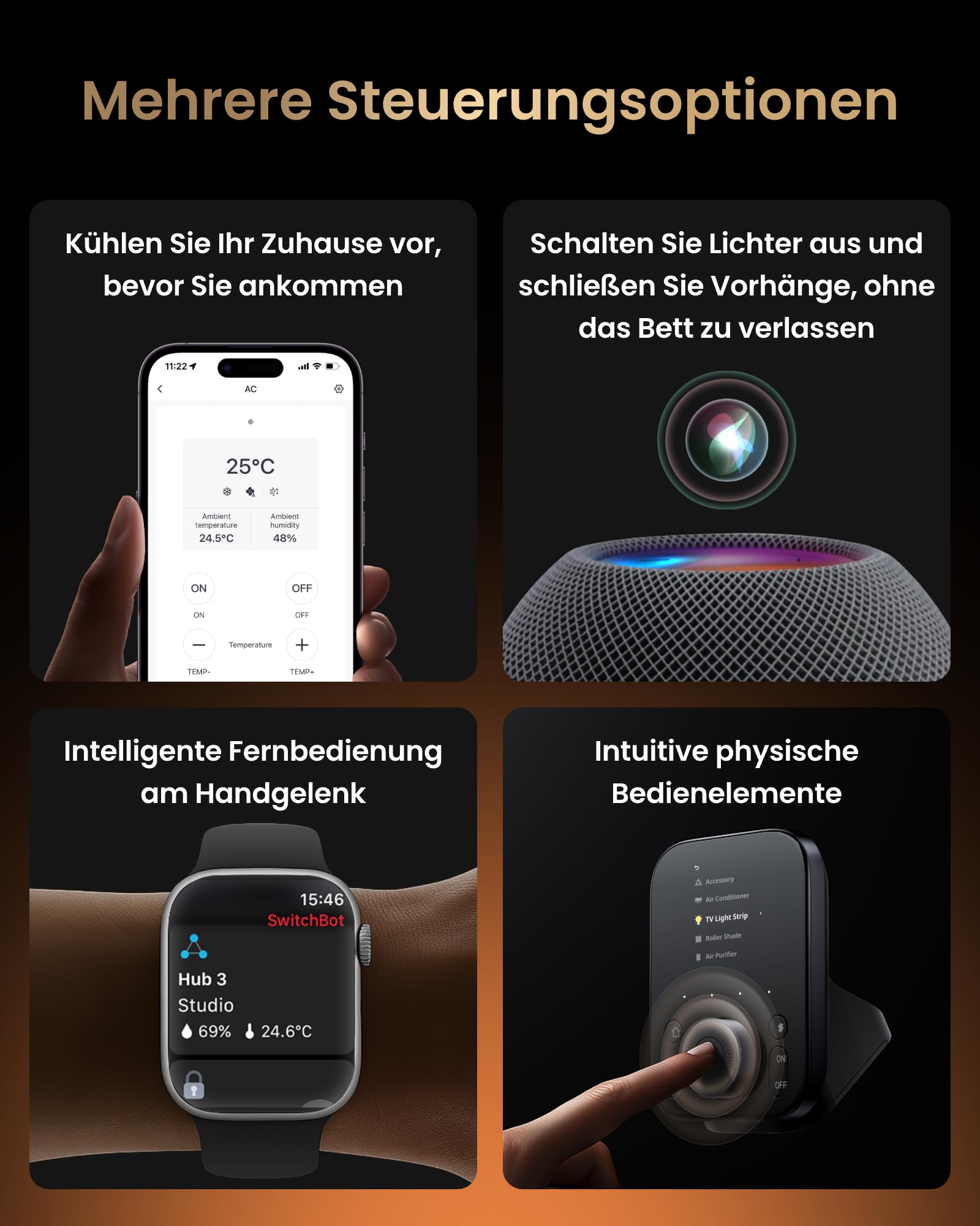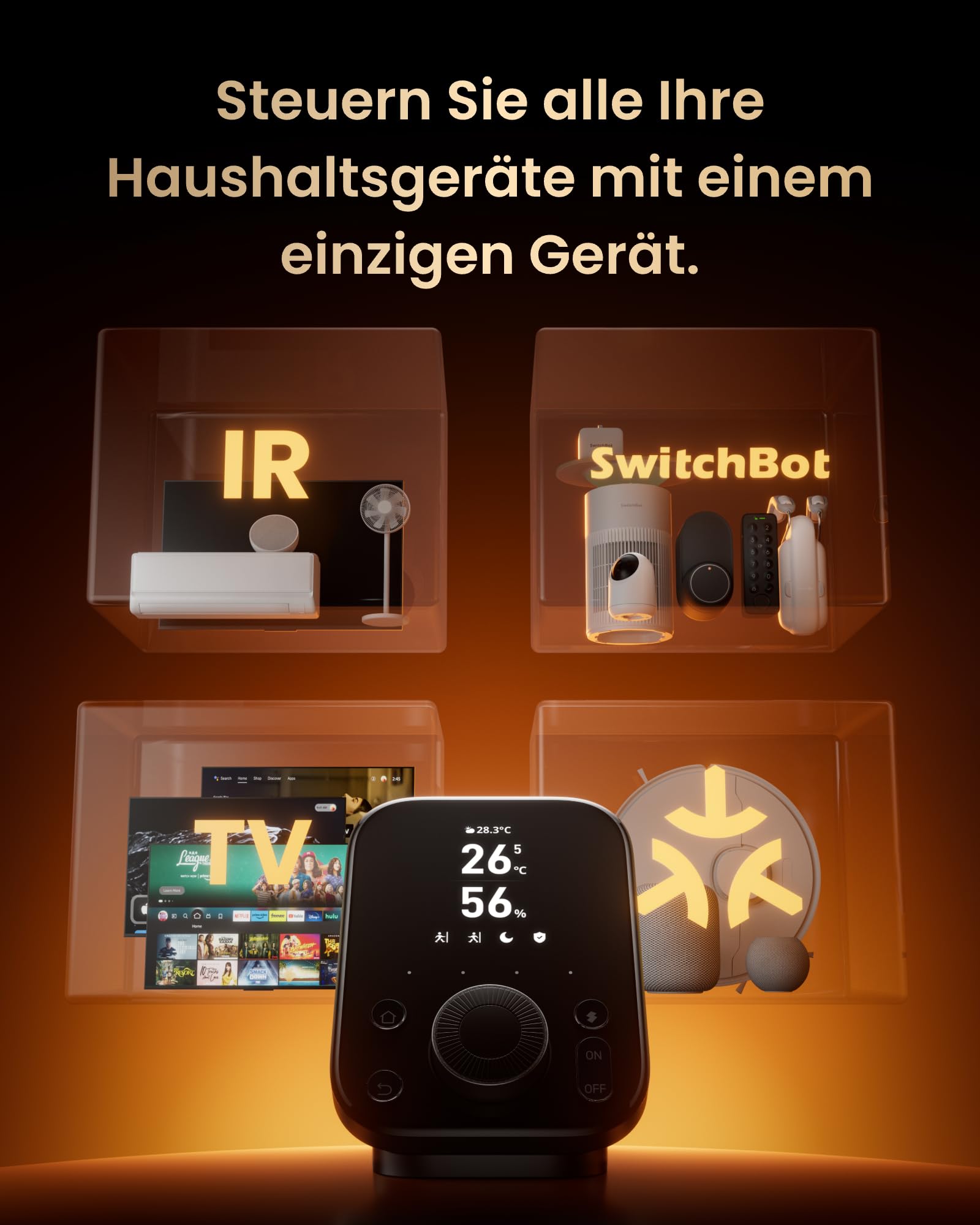 - Universelle Kompatibilität: Dient als Smart Home Hub für über 100.000 Infrarot-Geräte (wie Klimaanlagen und Fernseher), alle SwitchBot Bluetooth-Produkte sowie Matter-fähige Geräte.