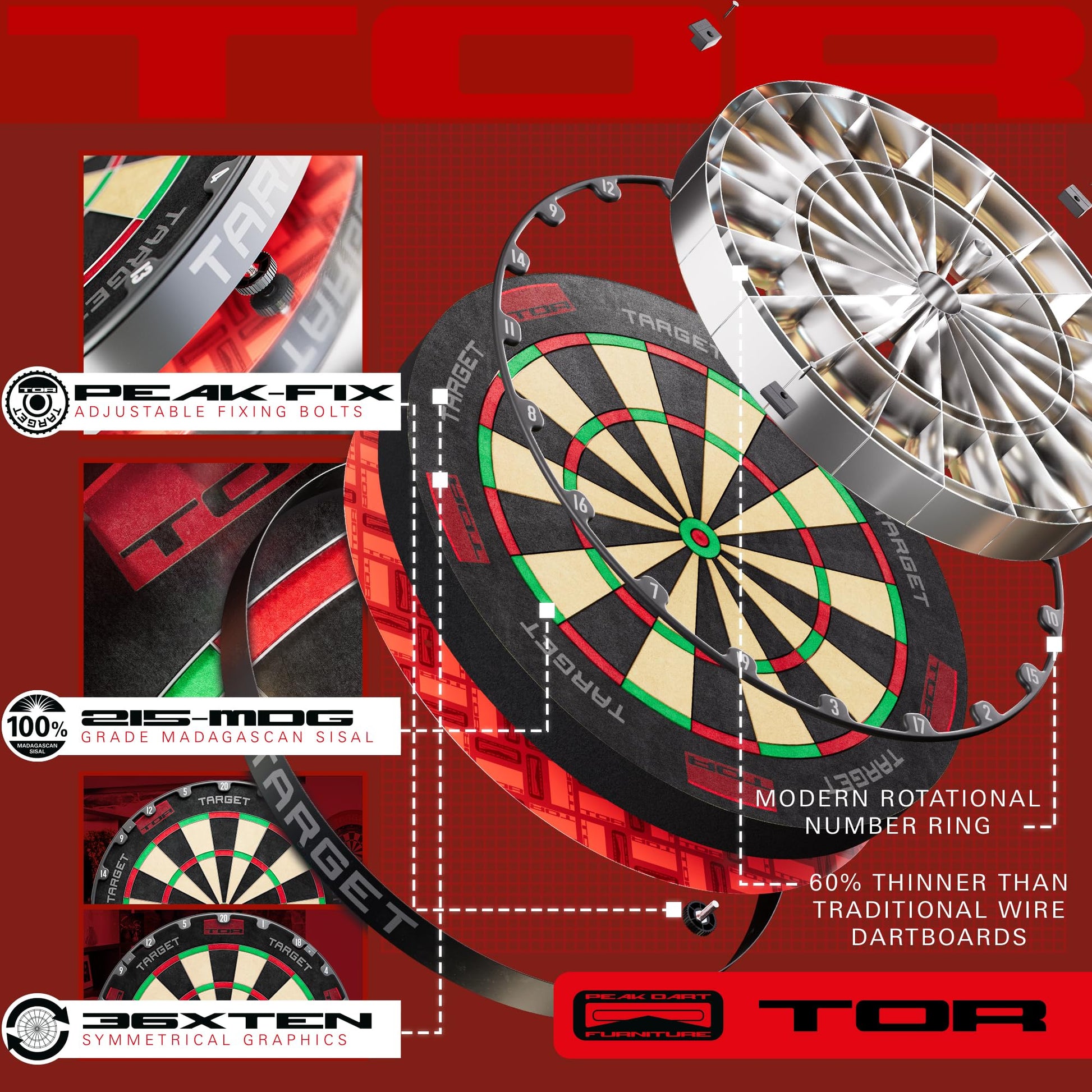 Das TOR Dartboard von Target Darts verbindet ein modernes, durchdachtes Design mit professionellen Wettkampf-Eigenschaften und setzt damit neue Massstäbe für Ihr Dartspiel.