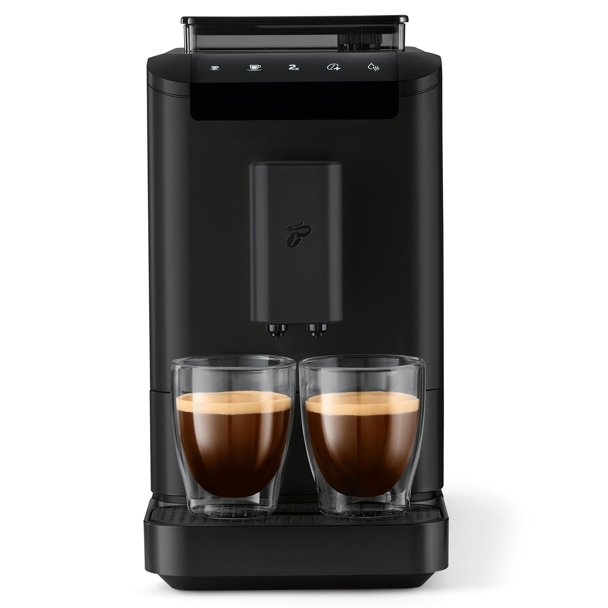 - Doppelter Kaffeeauslauf: Dank der Double-Cup-Funktion können Sie mühelos zwei Kaffeespezialitäten gleichzeitig zubereiten.