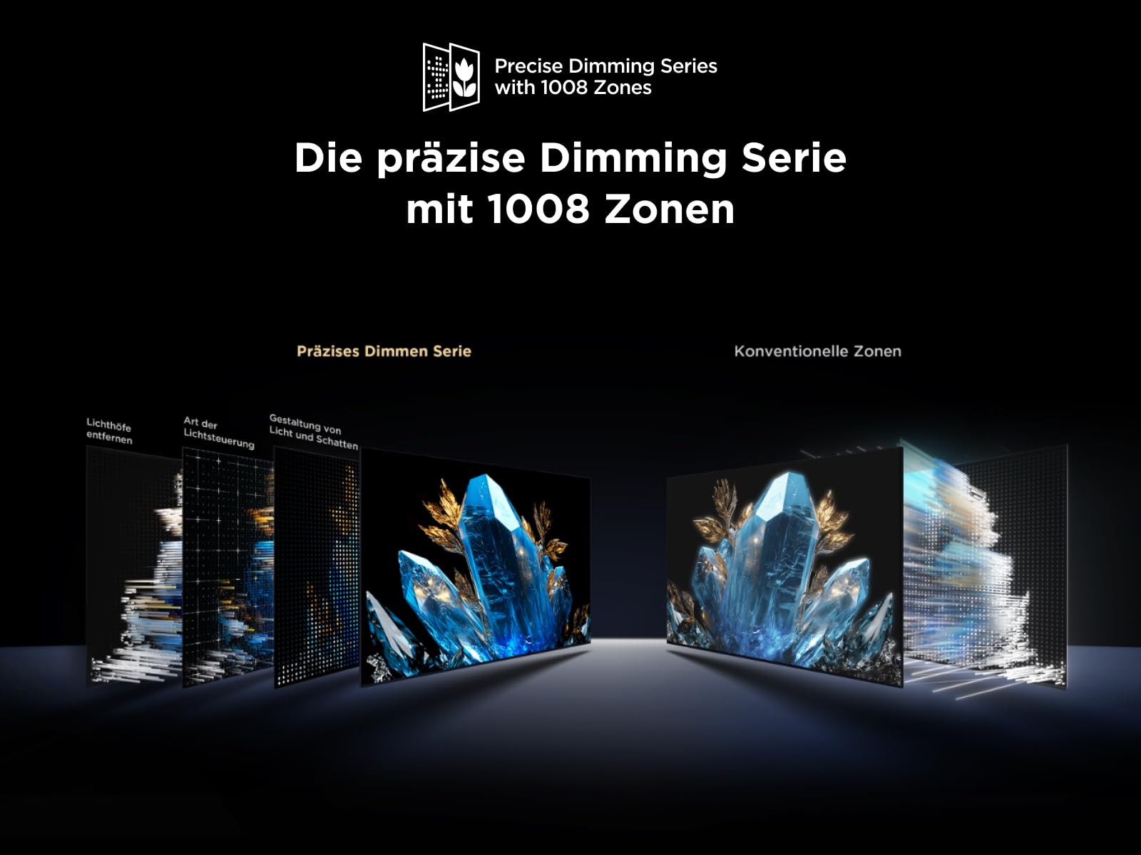 Die fortschrittliche QD-Mini LED Technologie liefert eine herausragende Bildqualität. Mit einer Spitzenhelligkeit von bis zu 2600 Nits und einer ultrafeinen Kontraststeuerung geniessen Sie tiefste Schwarzwerte und lebendige, naturgetreue Farben. Dank 4K HDR Premium 2600 und Dolby Vision IQ passt sich das Bild dynamisch an die Lichtverhältnisse in Ihrem Raum an, sodass Sie stets das bestmögliche Seherlebnis erhalten.