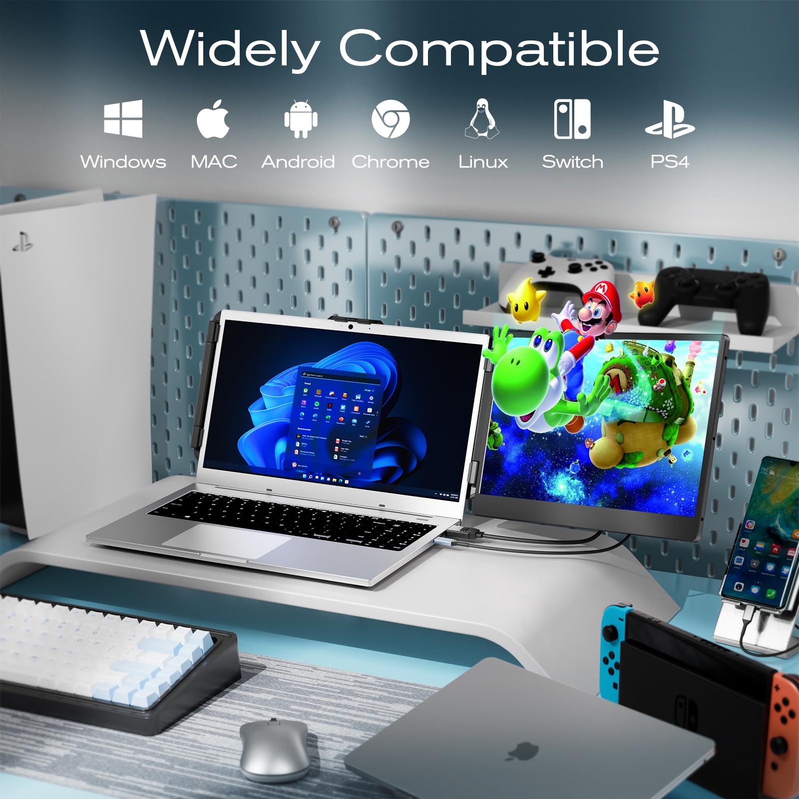 - Umfassende Kompatibilität: Der Monitor integriert sich nahtlos in Ihr technisches Umfeld. Er ist kompatibel mit Laptops (Windows, Mac inkl. M1/M2/M3, Chrome, Linux), Android-Geräten, Type-C-Smartphones sowie Spielkonsolen wie PS4, Xbox und Switch.