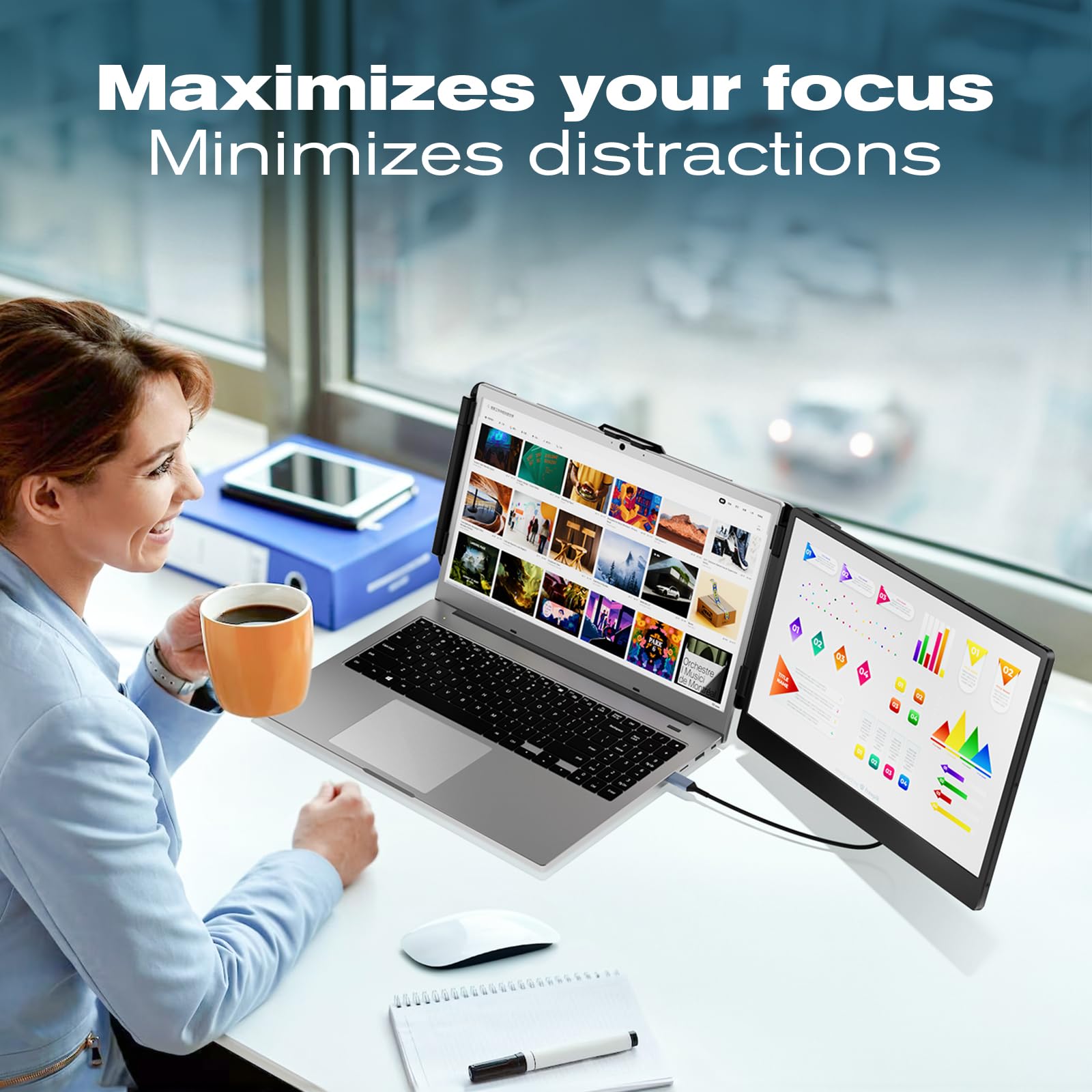 Steigern Sie Ihre Produktivität und Ihr Multitasking, egal wo Sie sind. Mit dem zweiten Bildschirm haben Sie mehr Platz für Ihre Anwendungen, Dokumente und Programme, was ein effizienteres und übersichtlicheres Arbeiten ermöglicht. Ideal für das Homeoffice, Geschäftsreisen oder das Studium.