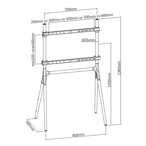 - Einzigartiges Design: Stilvoller TV-Ständer in Form einer Staffelei, passend für Bildschirme von 49 bis 70 Zoll.