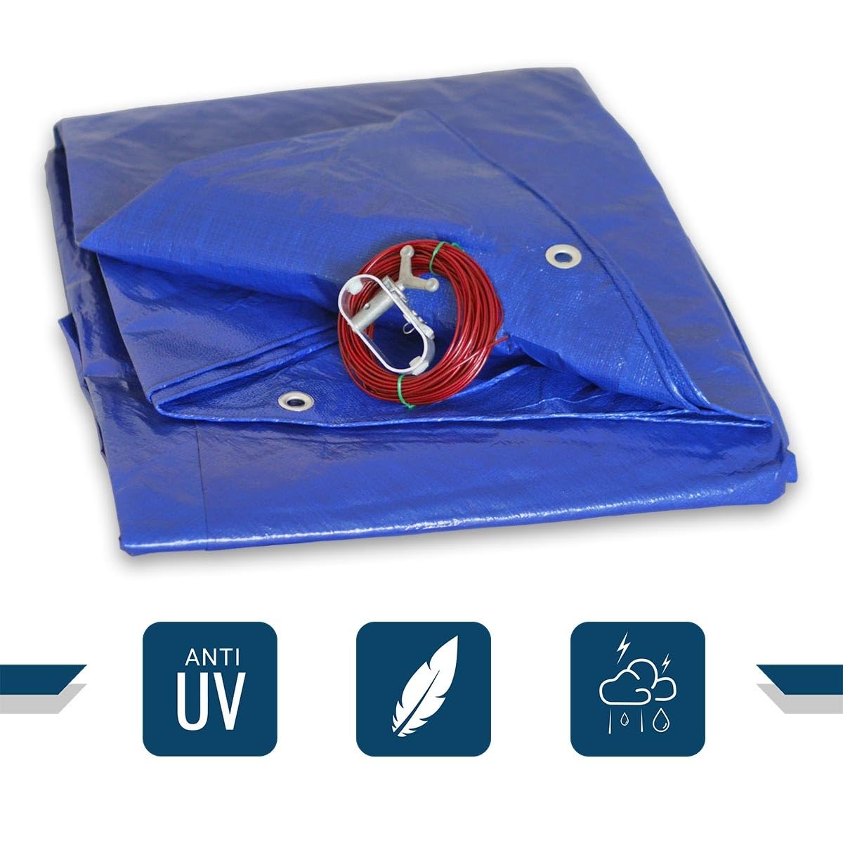 Mit dieser Abdeckplane bleibt Ihr Poolwasser über längere Zeit sauber und einladend. Gefertigt aus widerstandsfähigem PVC mit einer Materialstärke von 140 g/m², trotzt die blaue Plane zuverlässig Witterungseinflüssen wie Regen, Kälte oder Schnee. Sie ist die perfekte Lösung, um Ihren Aufstellpool sicher zu überwintern, ohne dass Sie das Wasser komplett ablassen müssen. Das spart nicht nur Zeit und Aufwand, sondern auch Kosten bei der Wiederinbetriebnahme im Frühling.