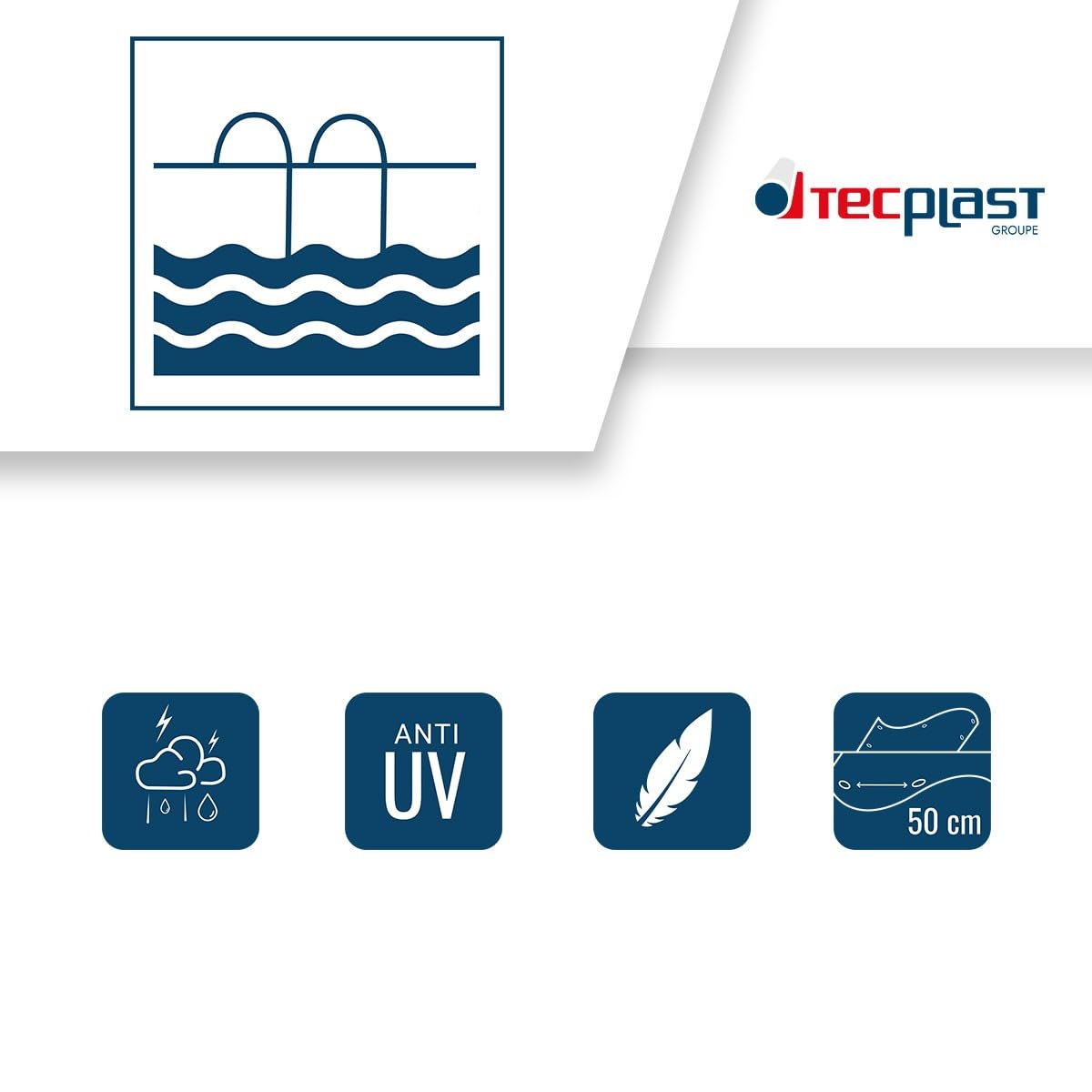 TECPLAST PO155RD Poolabdeckung rund - 6.20m f. 5.4m Pool, Abflussnetz