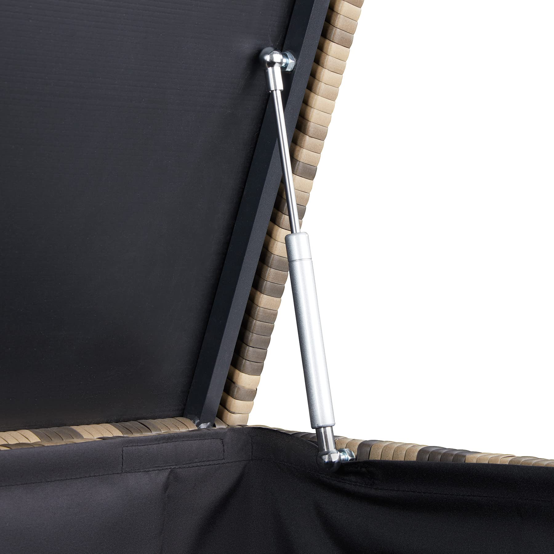 Die Kombination aus UV-beständigem Polyrattan und einem rostfreien Aluminiumgestell macht die Box extrem langlebig und wetterfest. Sie bleicht in der Sonne nicht aus, rostet nicht und kann das ganze Jahr über im Freien stehen bleiben.