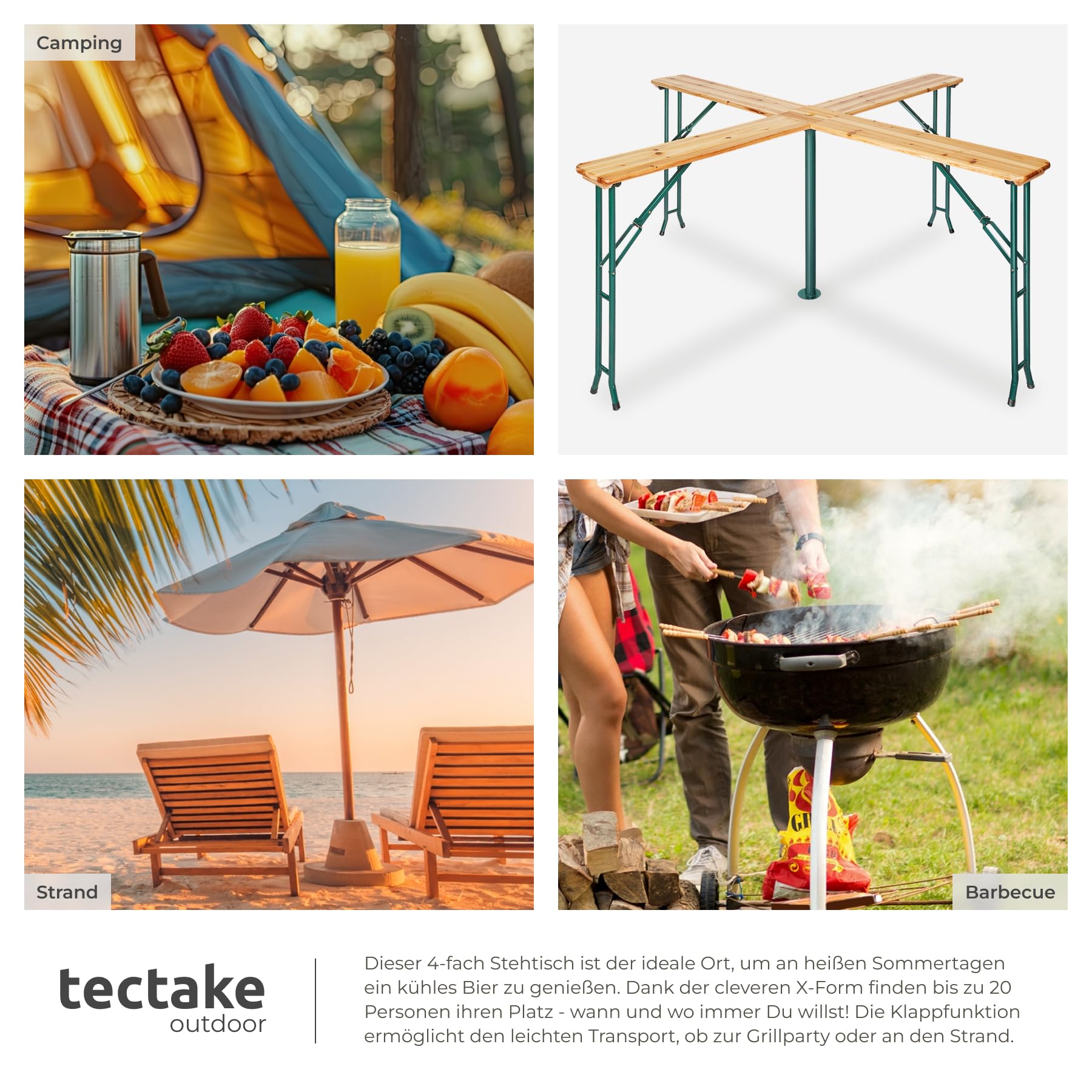 tectake® Stehtisch Quattro XXL Klapptisch - Holz outdoor