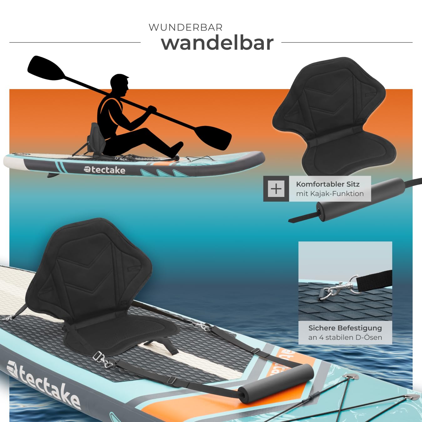 tectake® SUP Paddle Board aufblasbar Set - türkis/orange